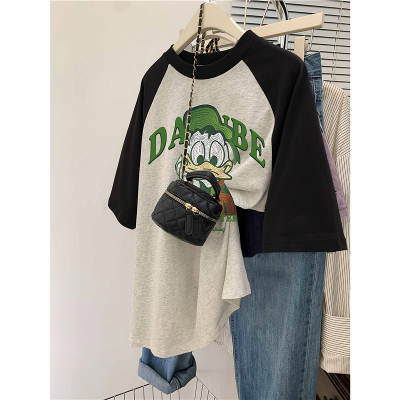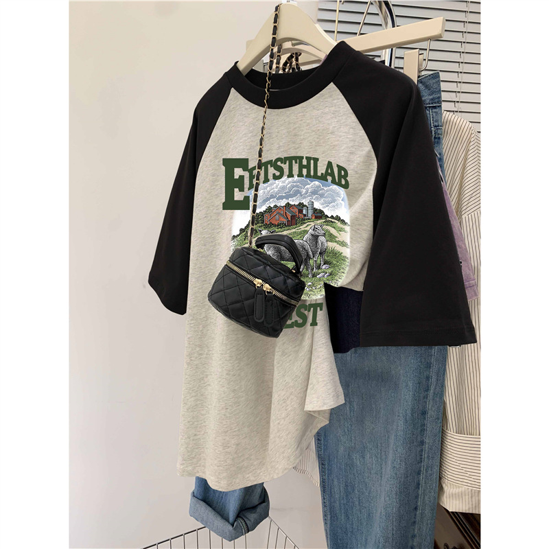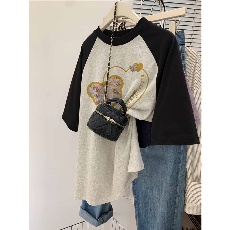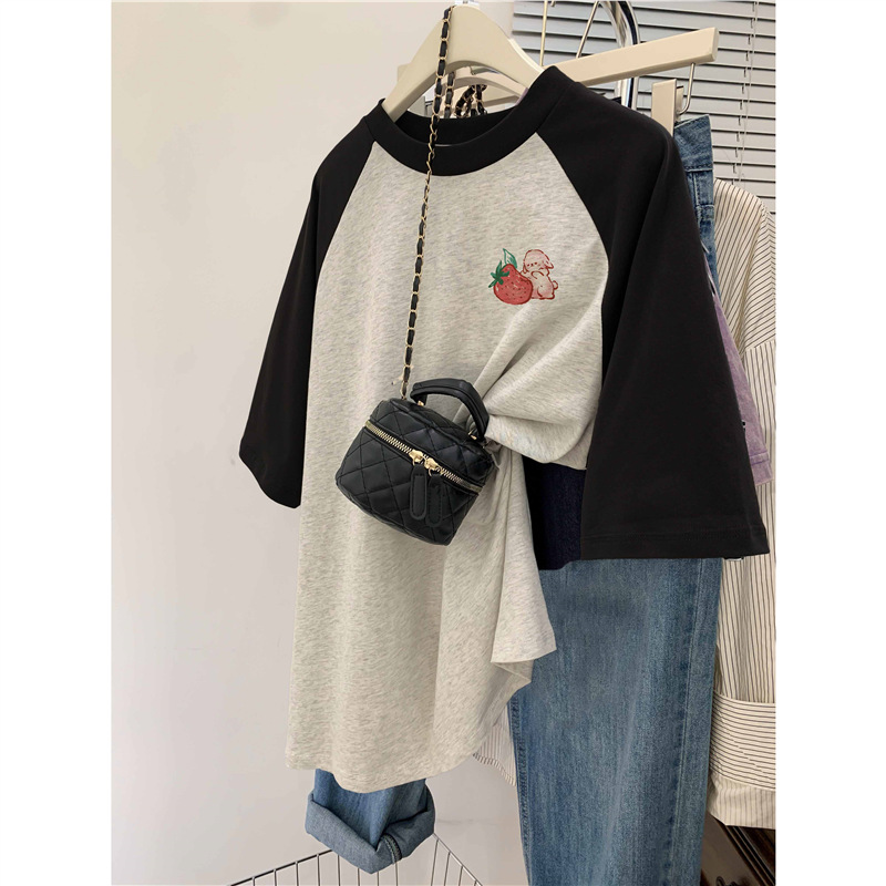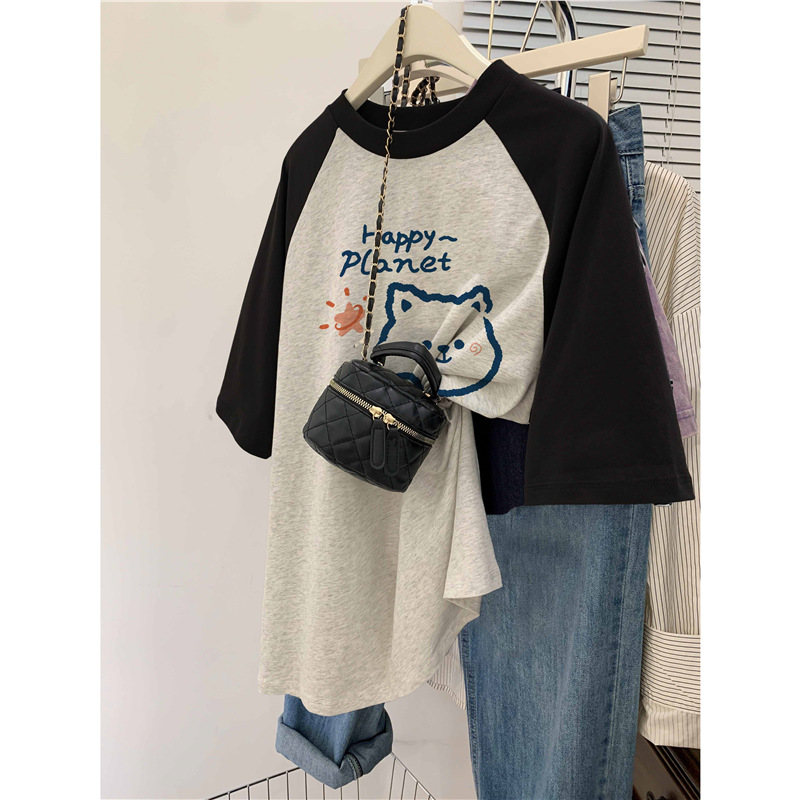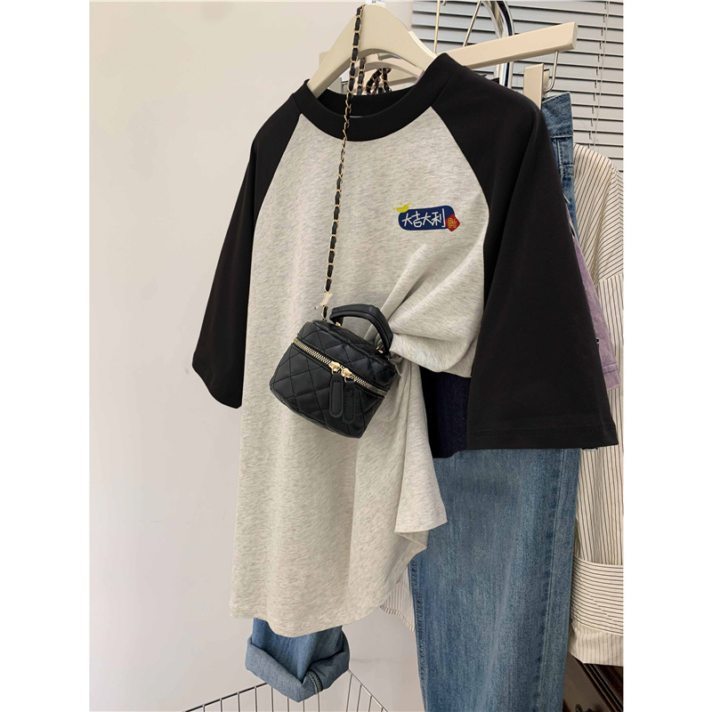 插肩大码纯棉短袖t恤女夏季新款ins潮设计感韩版oversize上衣