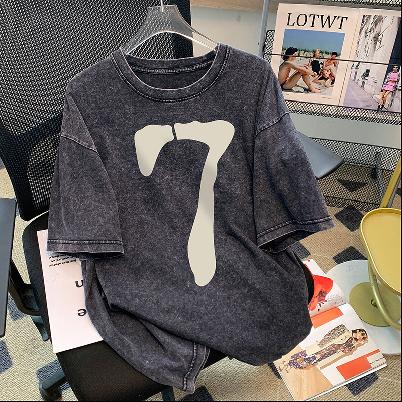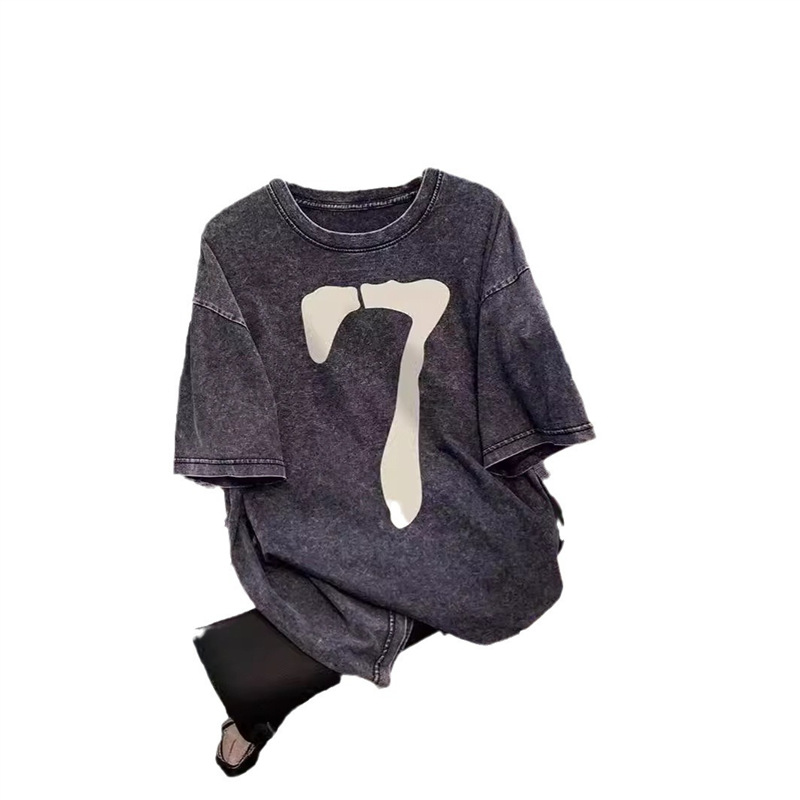 纯棉美式复古插肩短袖t恤女夏季新款潮牌小众设计感港味chic上衣