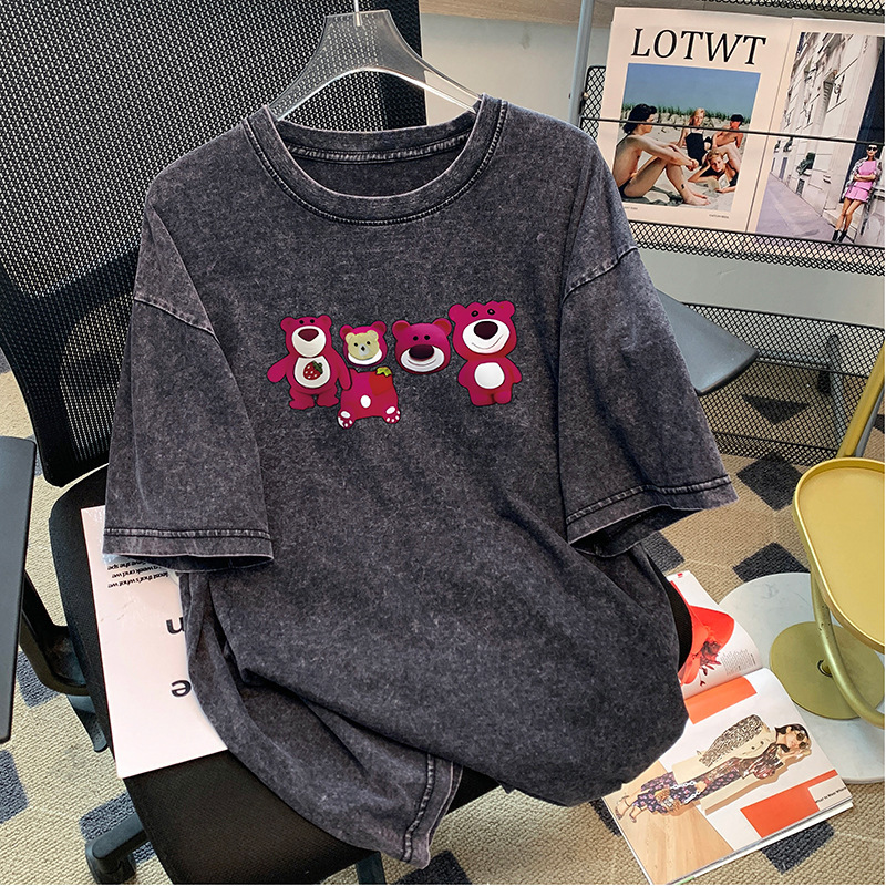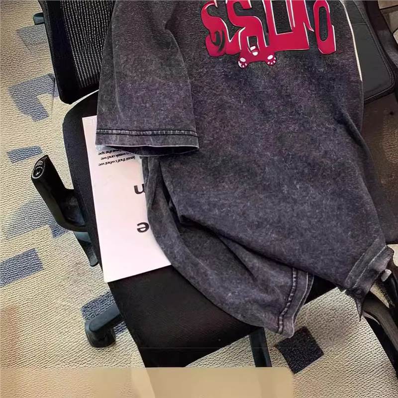 美式高街潮牌短袖t恤男女夏季复古欧货休闲水洗做旧半袖小众体恤