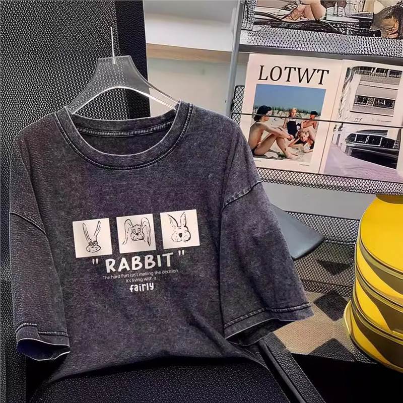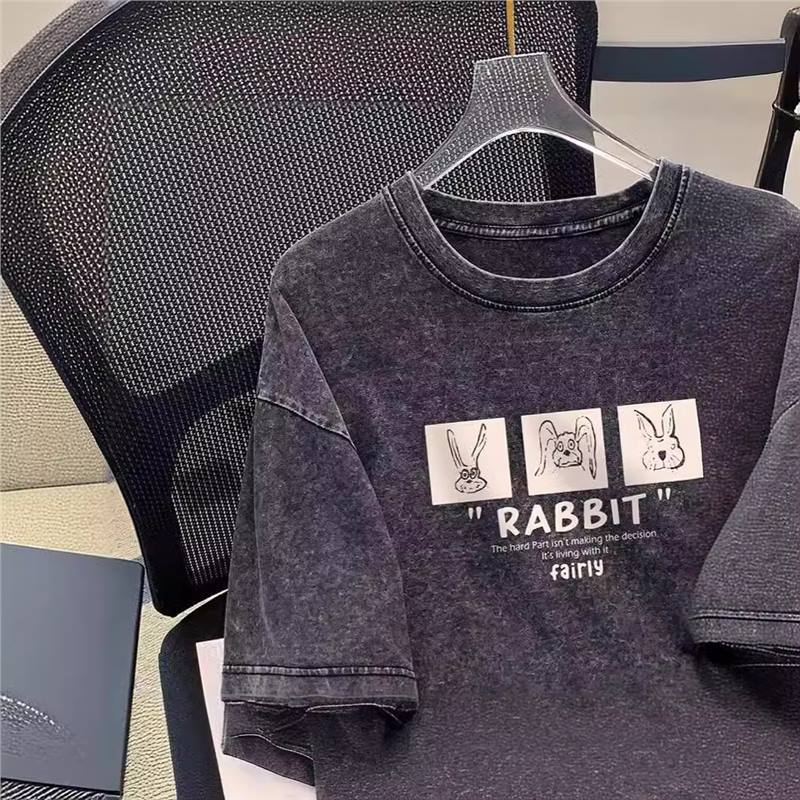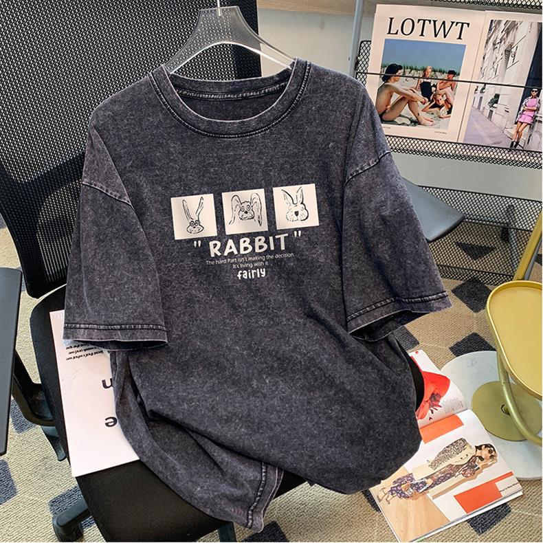 夏季新款卡通兔子正肩纯棉短袖T恤女宽松百搭减龄白色上衣潮