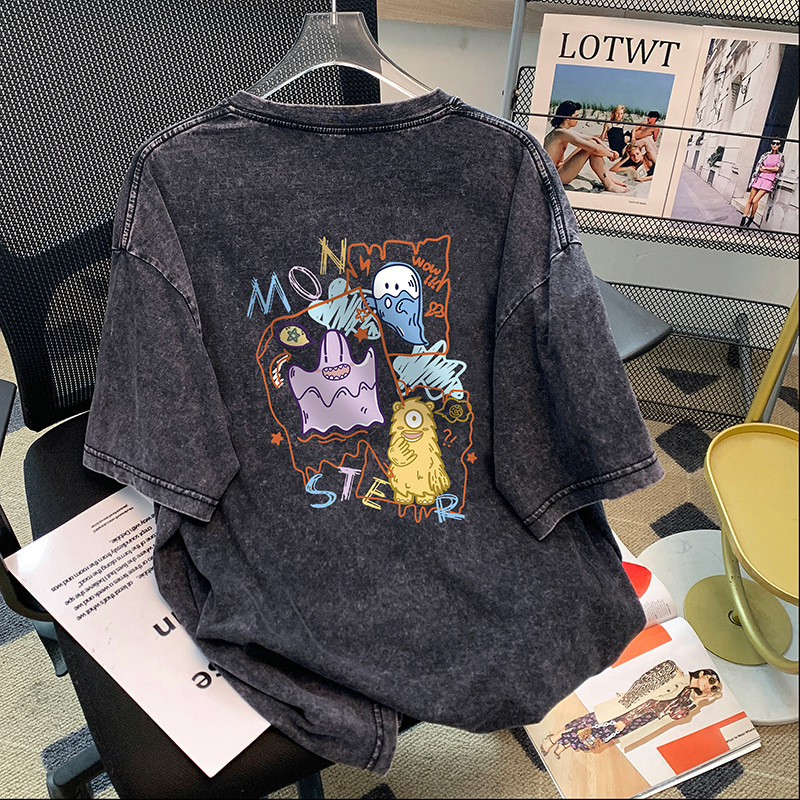 夏季新款圆领短袖情侣T恤男女同款宽松学生卡通半袖体恤DT614
