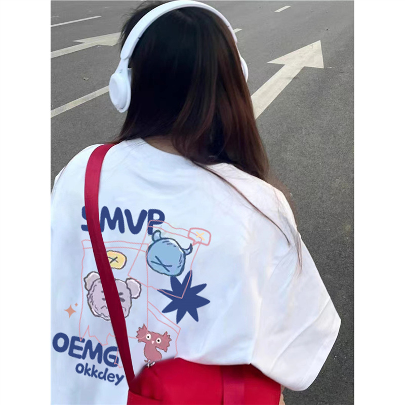 纯棉正肩短袖t恤女新款夏季设计感小众美式宽松白色半袖上衣
