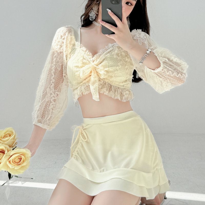 【蕾丝女神】新款仙气泳衣女分体两件套保守显瘦遮肚学生泳装