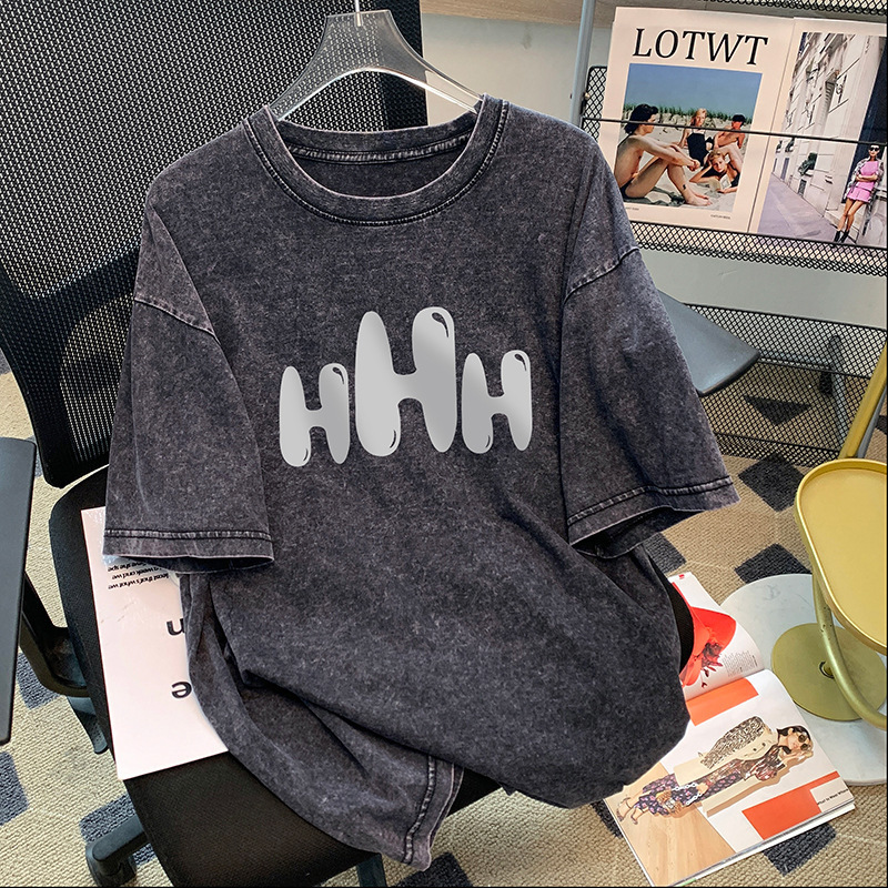 重磅水洗做旧短袖男女美式复古纯棉T恤夏季宽松ins潮牌高街上衣服