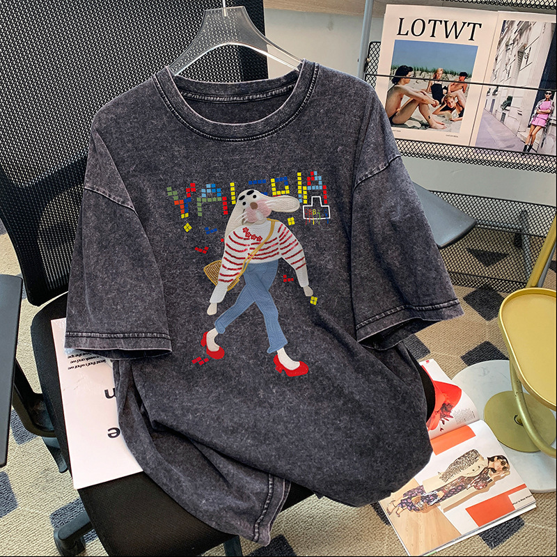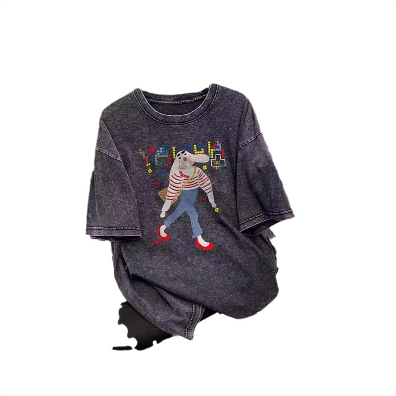 美式高街短袖男女潮牌t恤水洗做旧重磅纯棉oversize纯棉半袖上衣