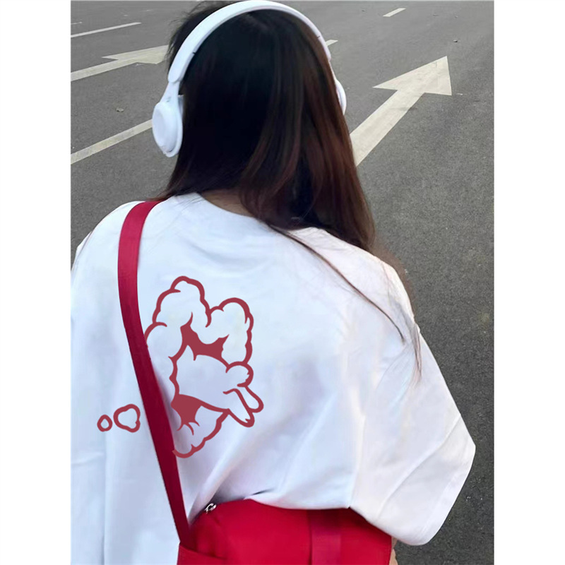 纯棉正肩白色短袖t恤女新款夏季设计感小众美式宽松半袖上衣