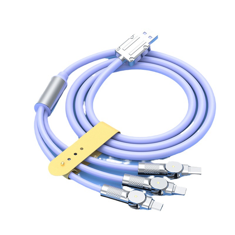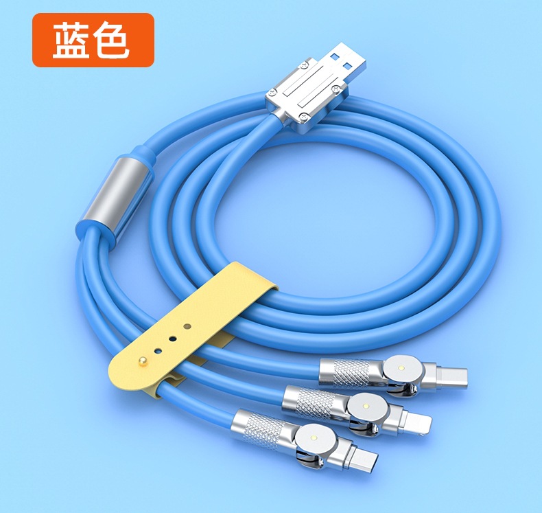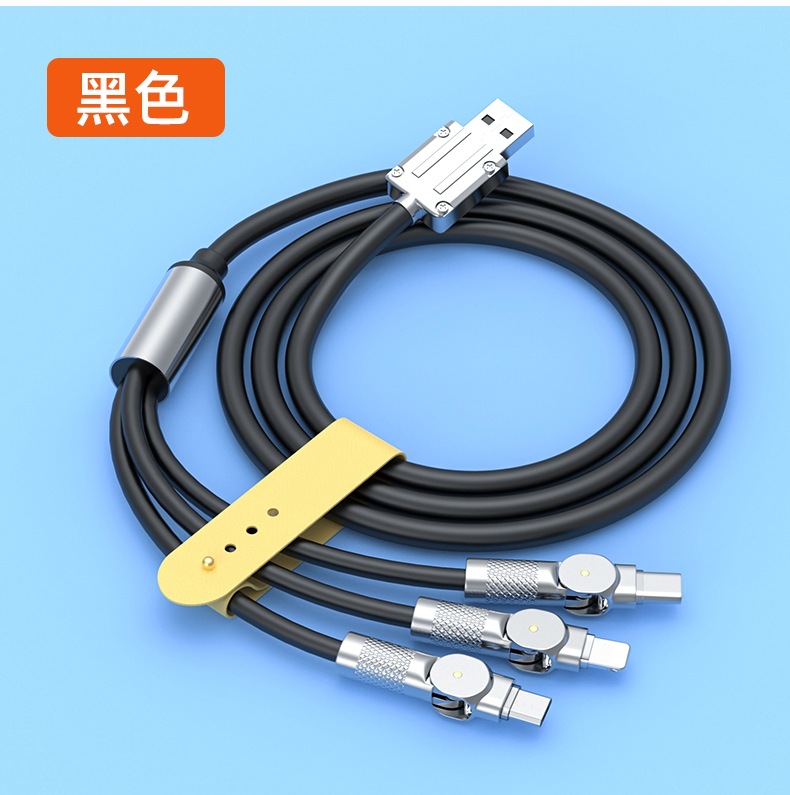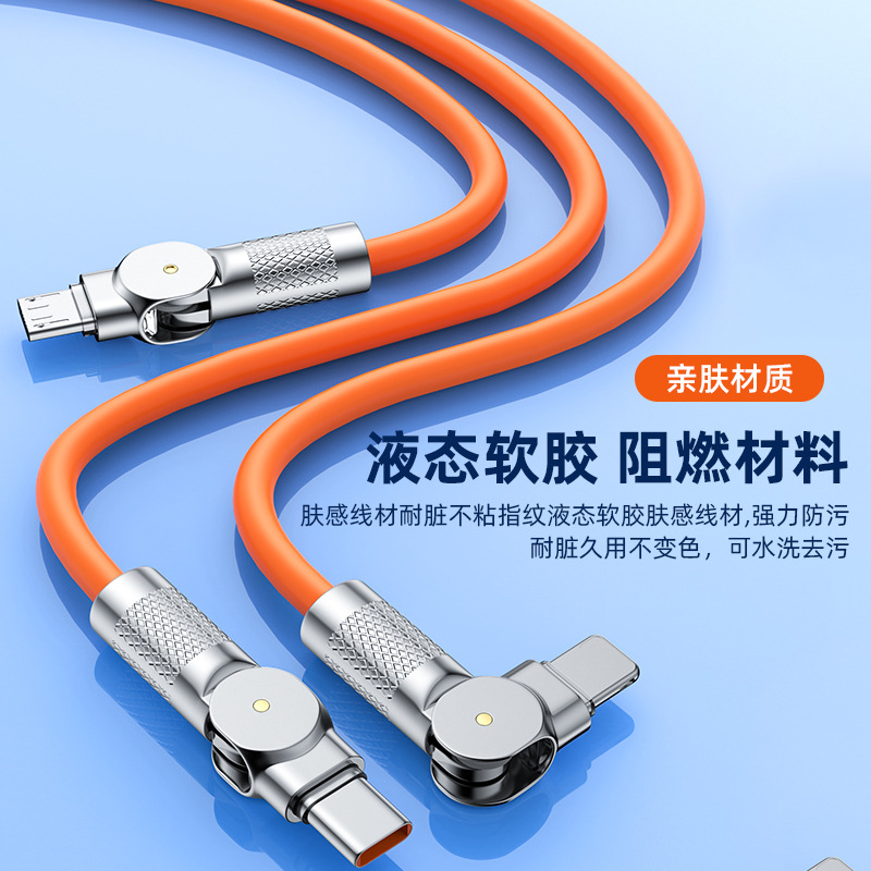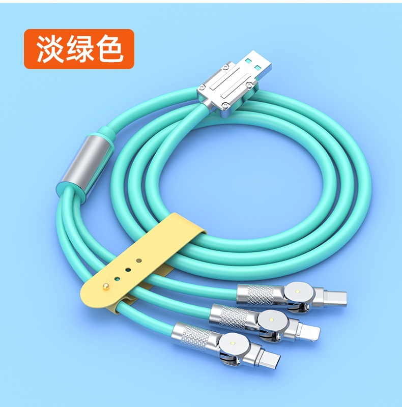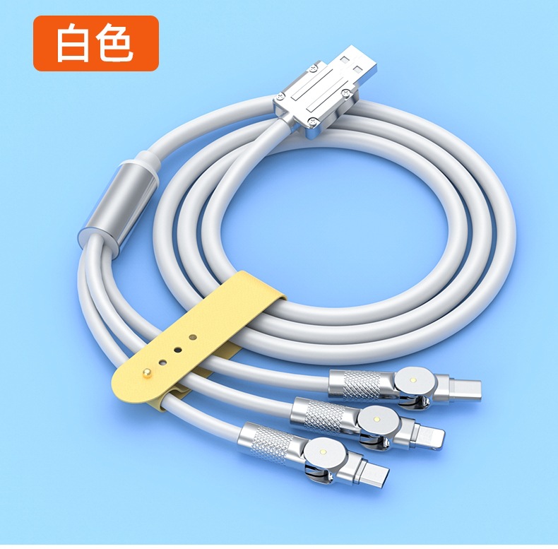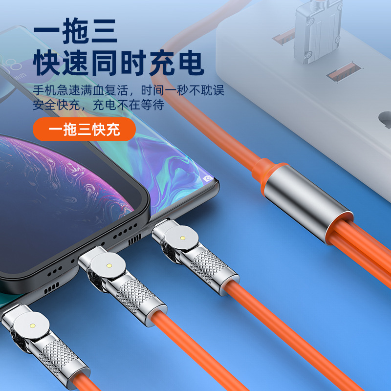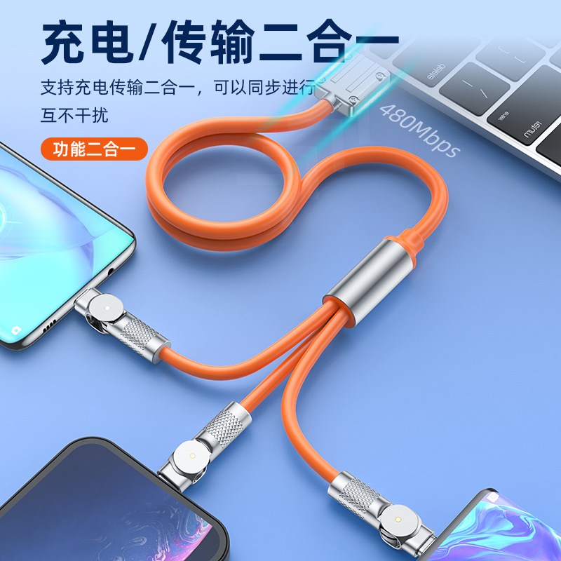 180度锌合金旋转一拖三手机数据线超级快充弯头带灯三合一充电线