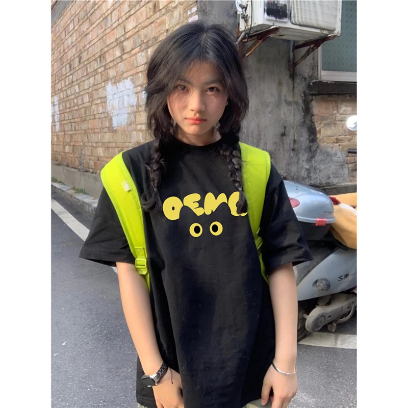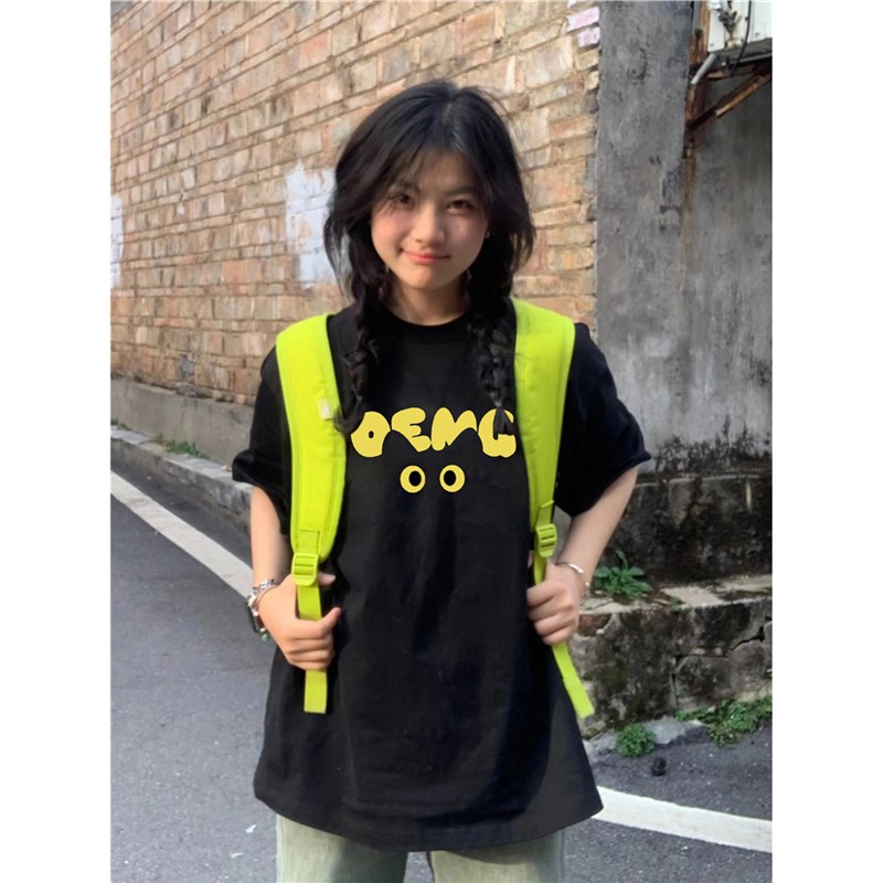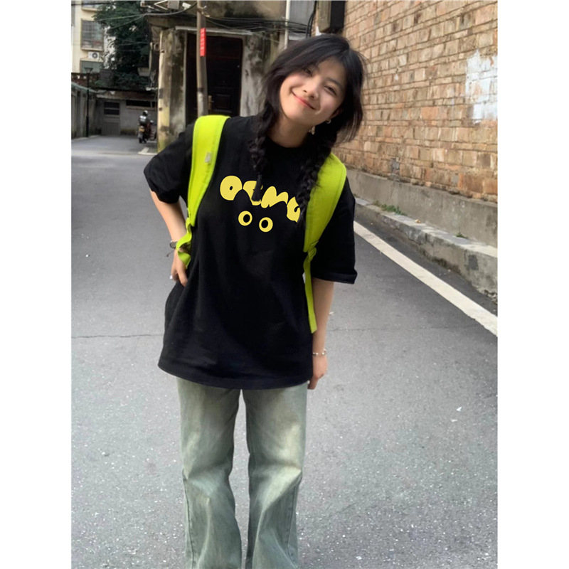 夏季纯棉短袖t恤女新款爆款正肩设计感小众美式宽松半袖上衣