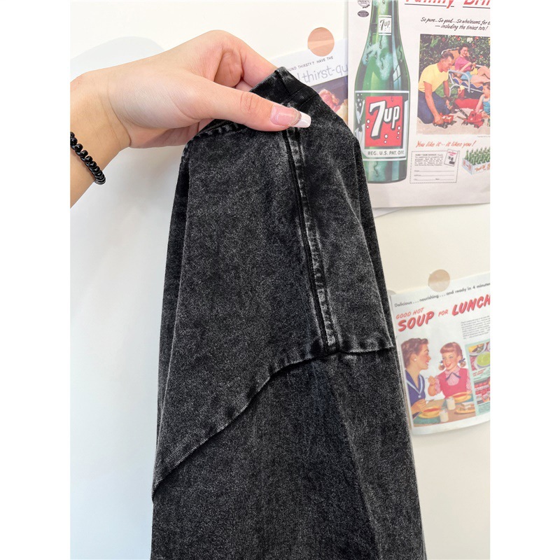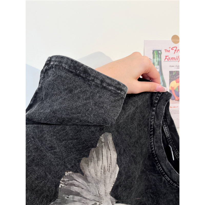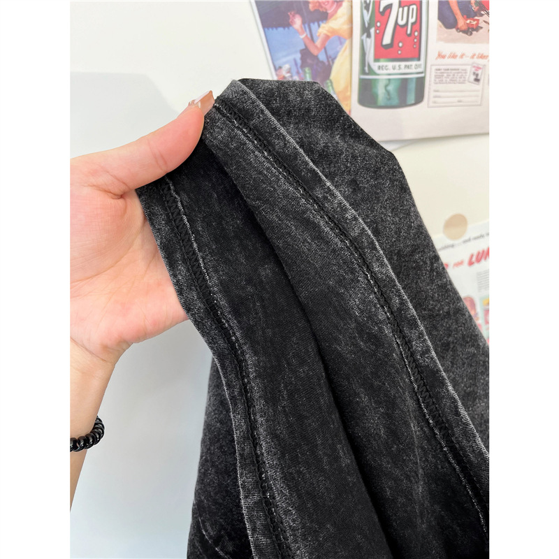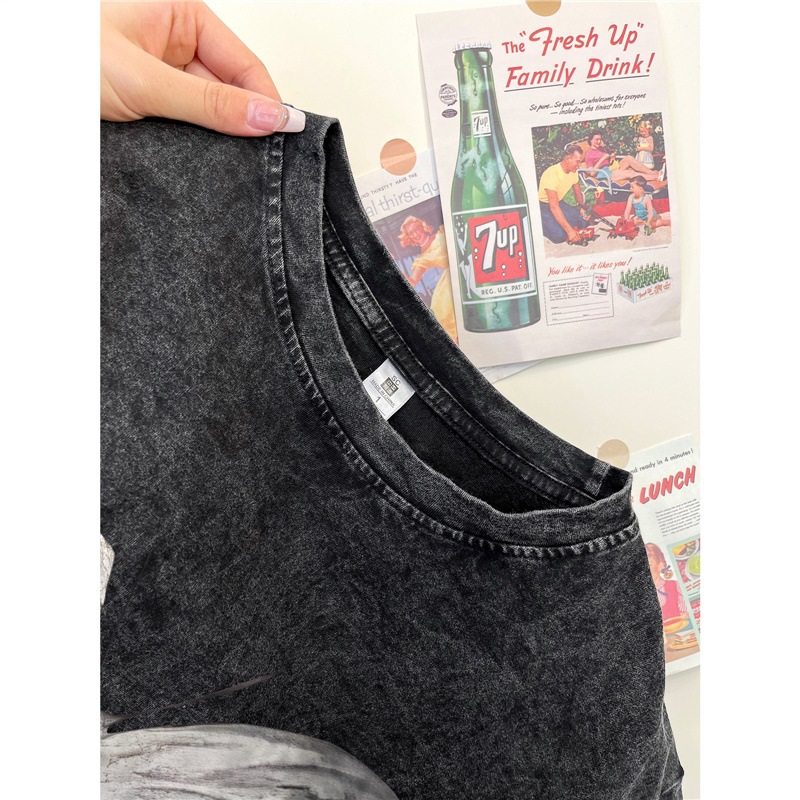 嘻哈重磅纯棉复古做旧水洗黑短袖t恤男女夏季新款宽松慵懒风上衣