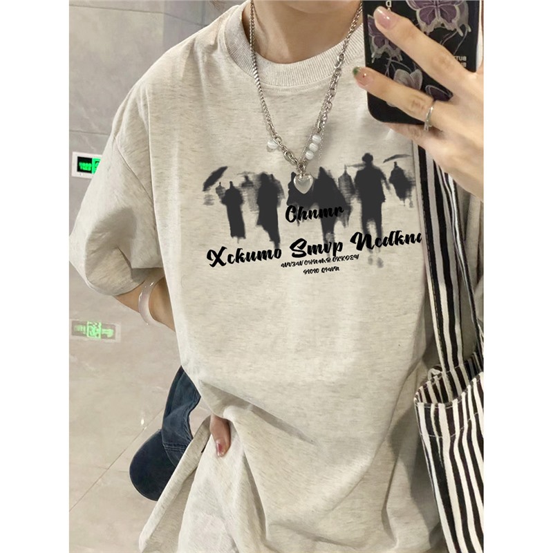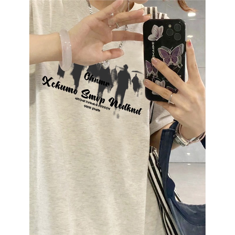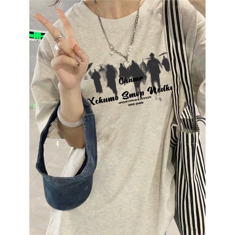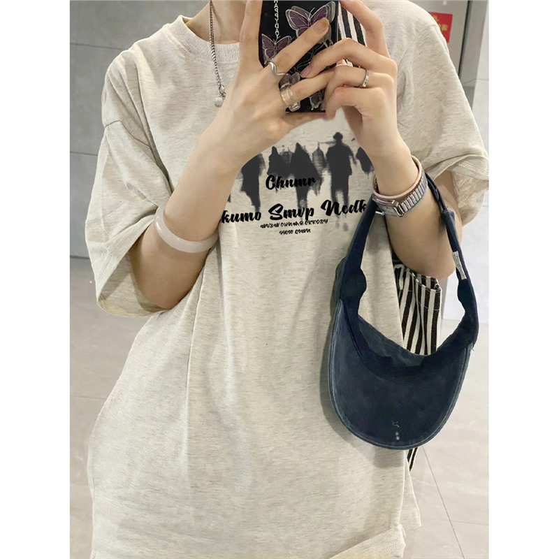 夏季纯棉正肩短袖t恤女新款爆款设计感小众美式宽松半袖上衣