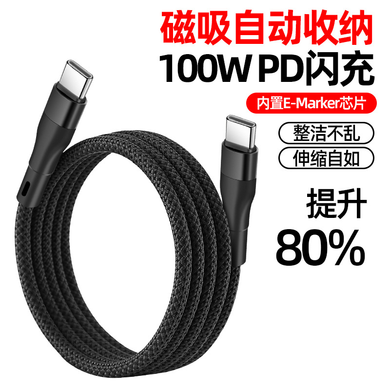 便携收纳魔绳快充线磁吸线适用于苹果15数据线安卓type-c数据线