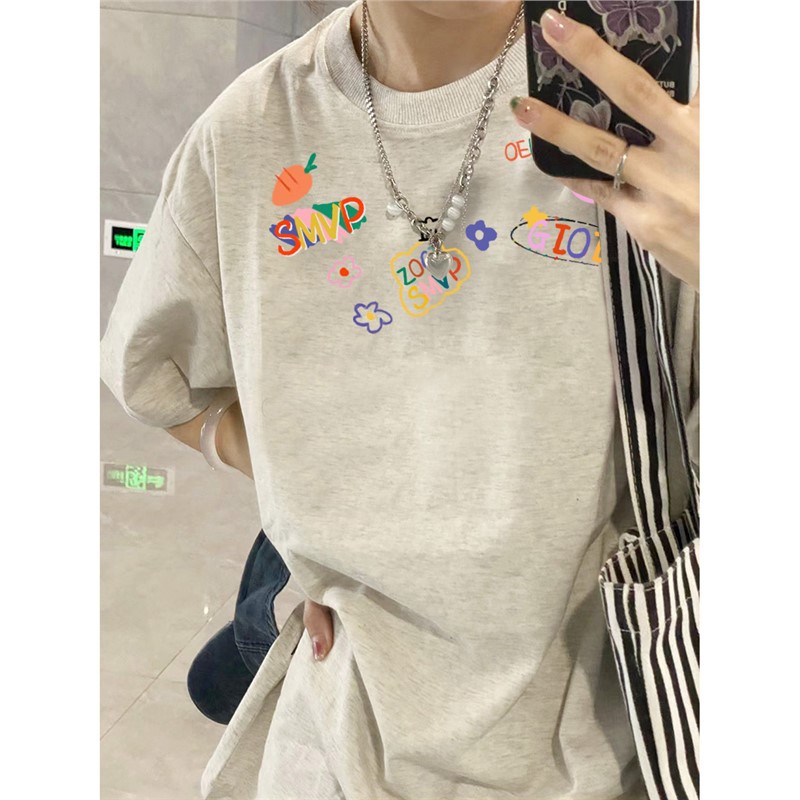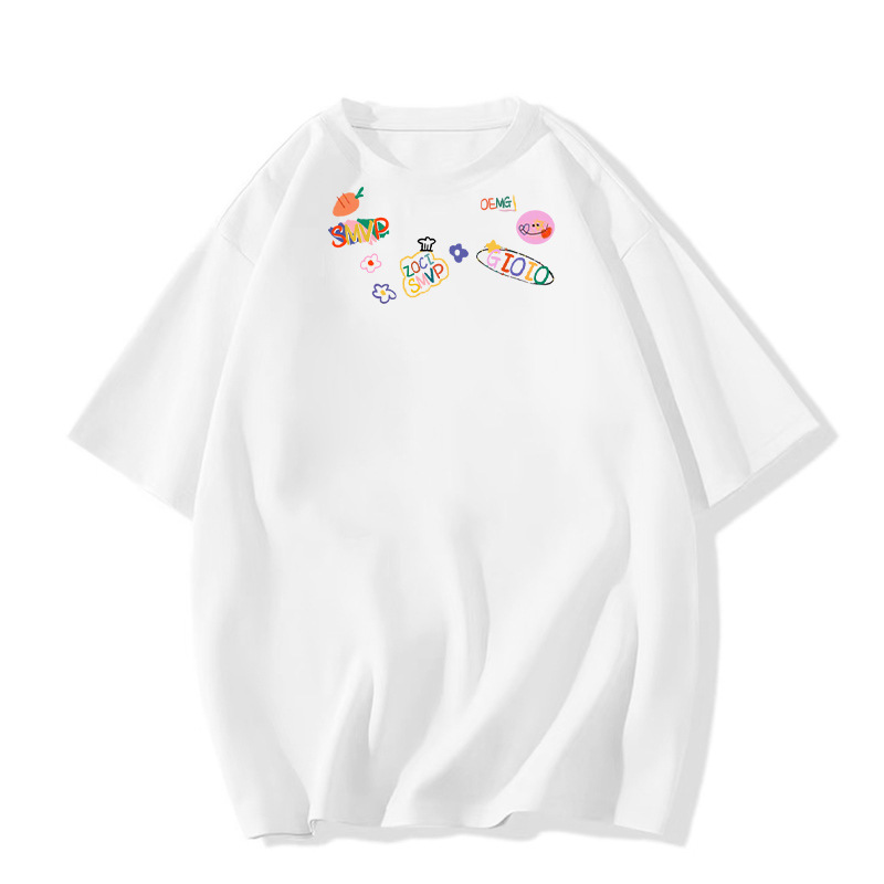 白色烫金满身印卡通熊宽松中长款遮短袖t恤女洋气减龄设计感