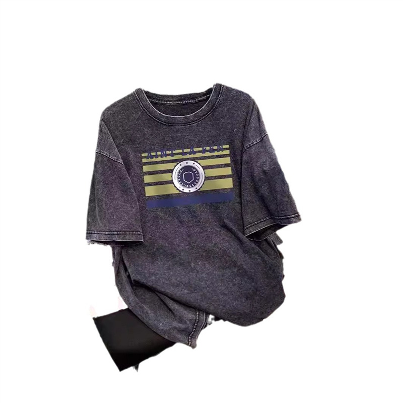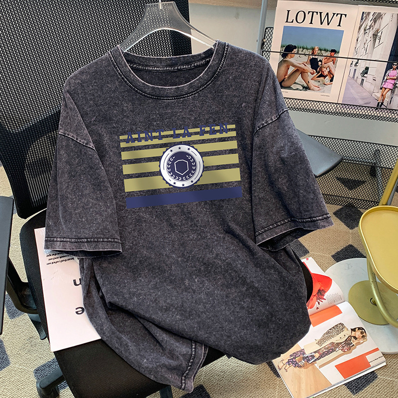 复古做旧纯棉短袖t恤女夏宽松胖妹mm韩国特大码潮牌欧美半袖上衣
