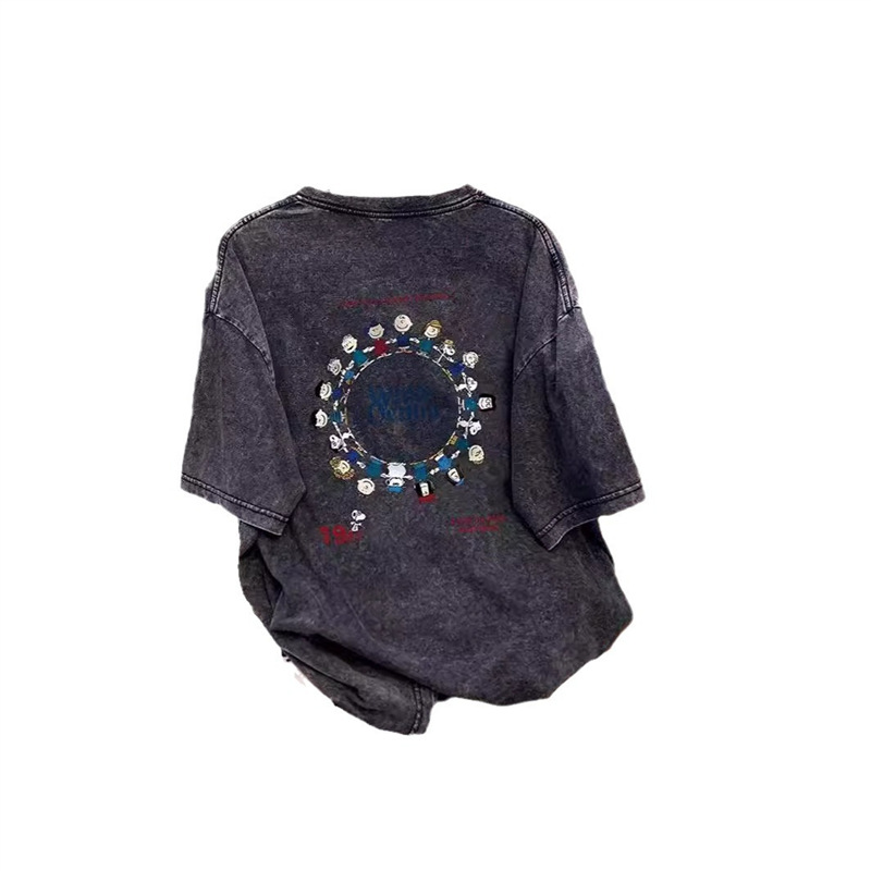 重磅美式水洗短袖t恤男女夏季复古做旧情侣装上衣ins嘻哈半袖体恤