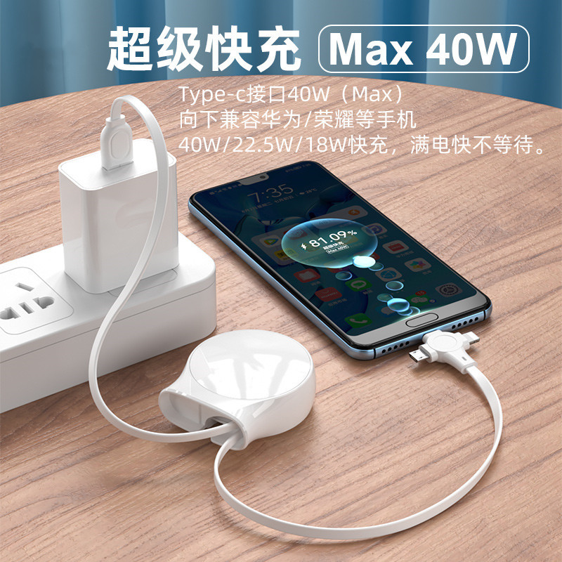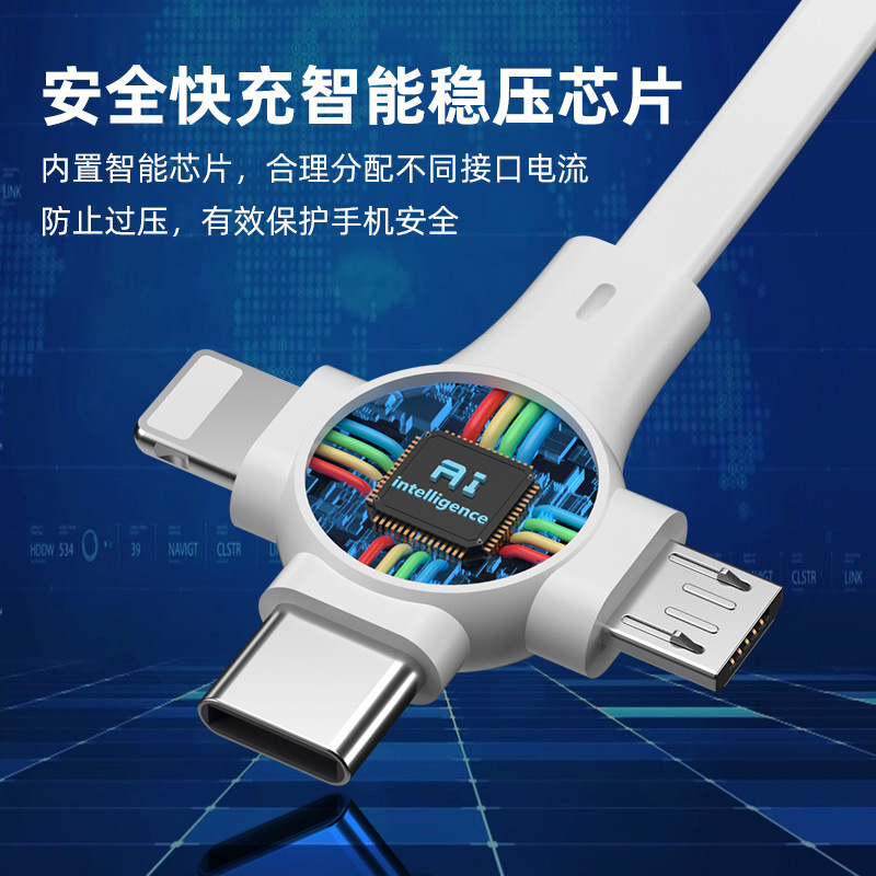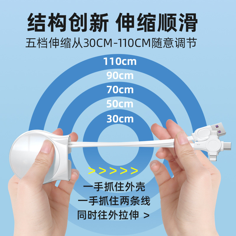 爆款手机三合一数据线 伸缩充电线一拖三 适用于苹果华为快充三头