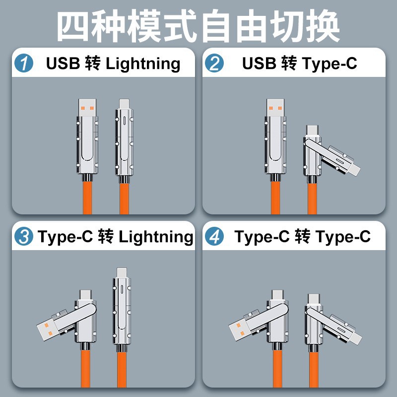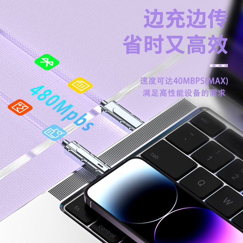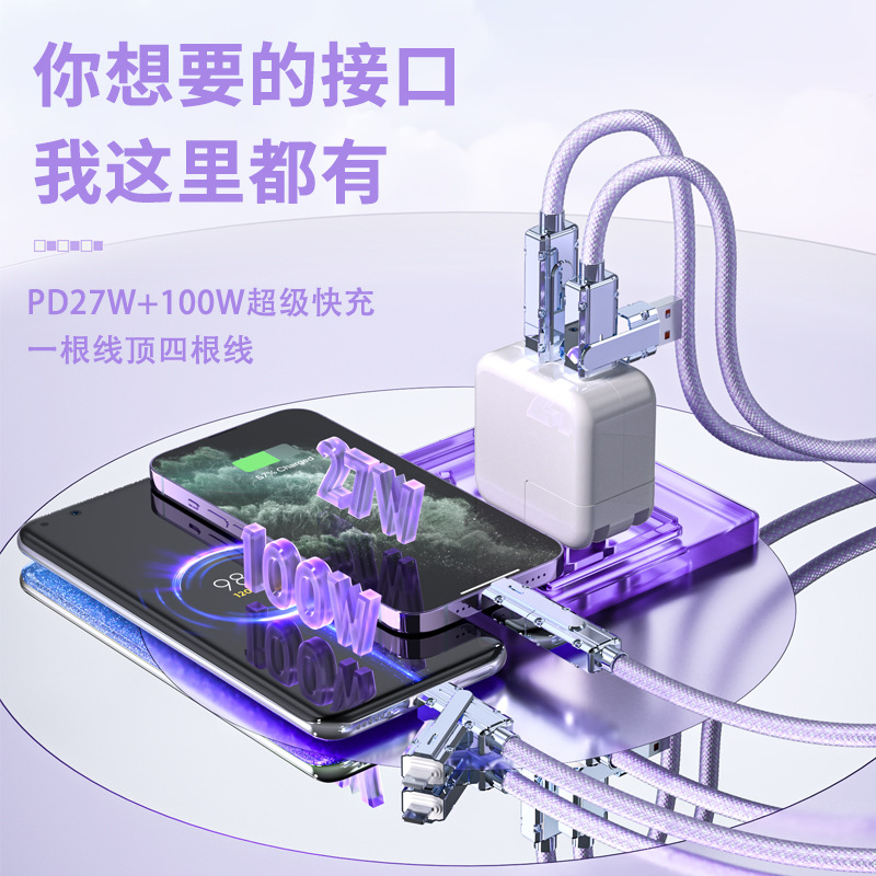 100W二拖二数据线适用苹果PD27W快充华为66W超级快充一拖四数据线