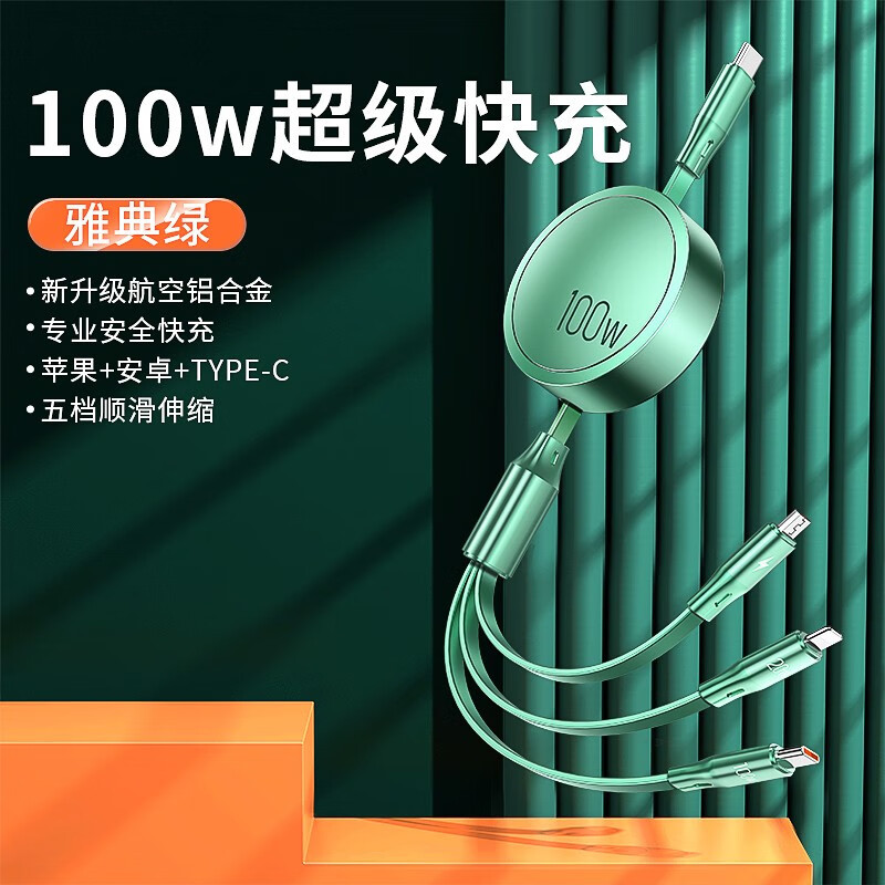 Type-C接口(100W)一拖三-绿色