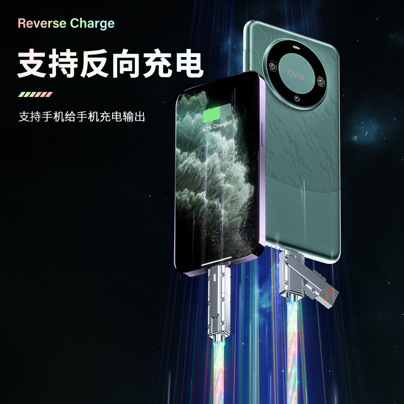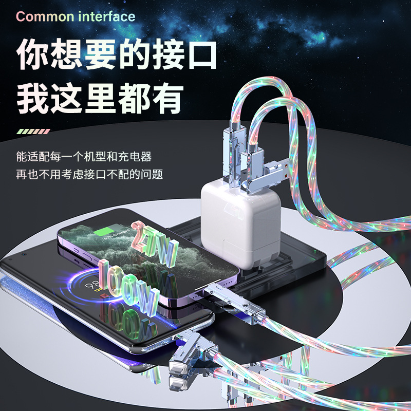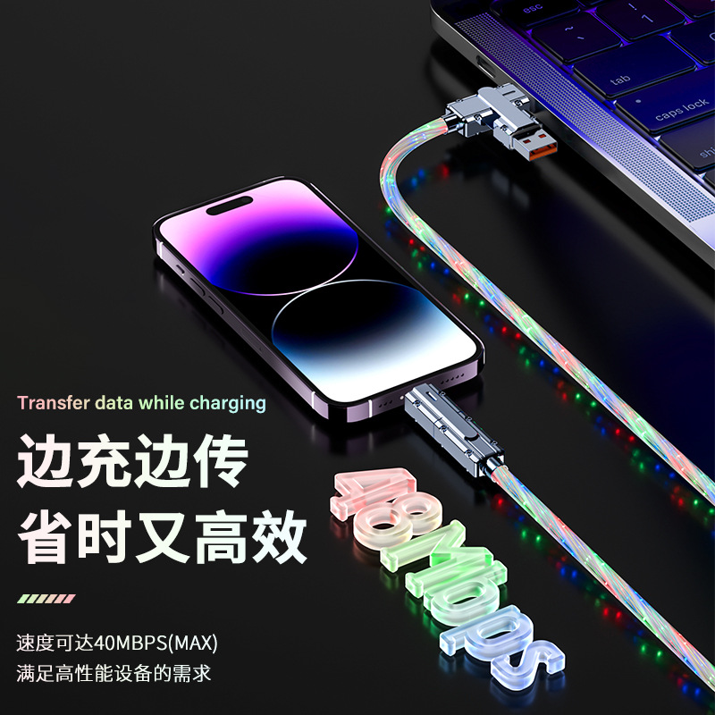 二拖二流光数据线双头适用小米苹果华为OPPOvivo快充100W快充电线