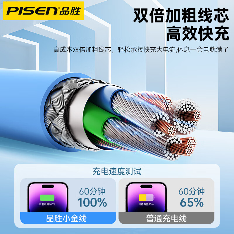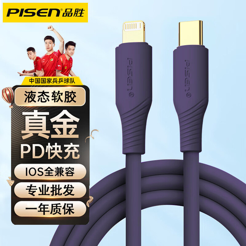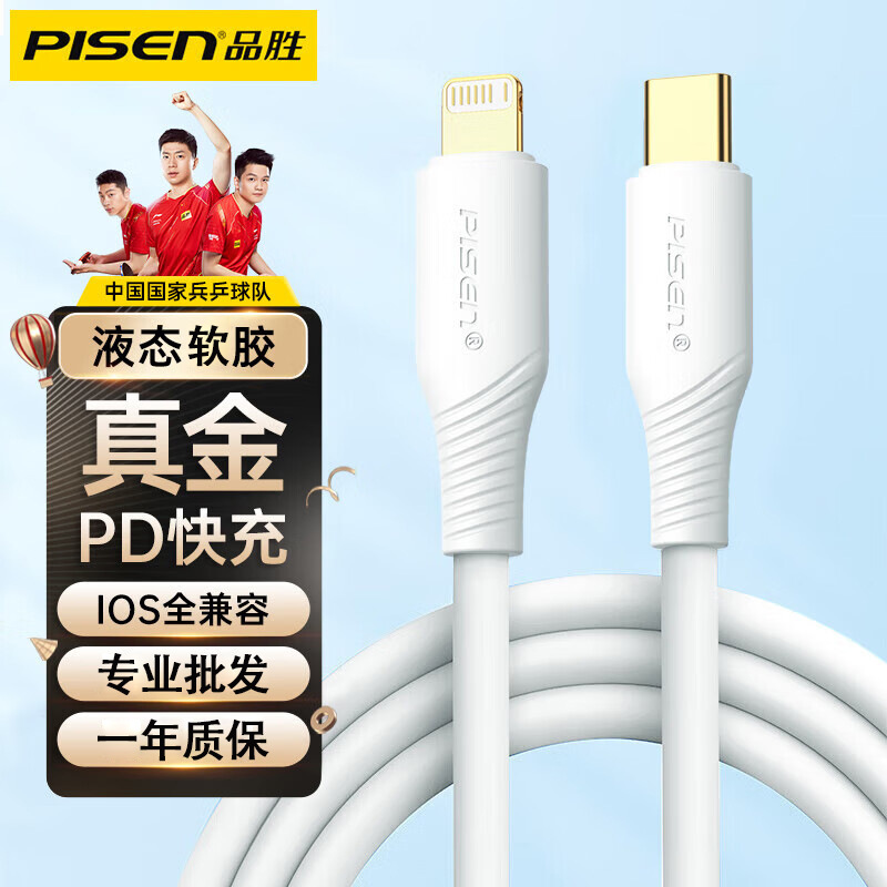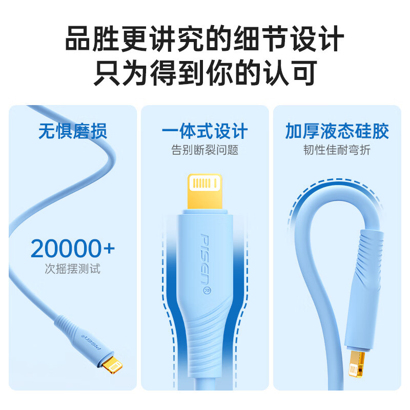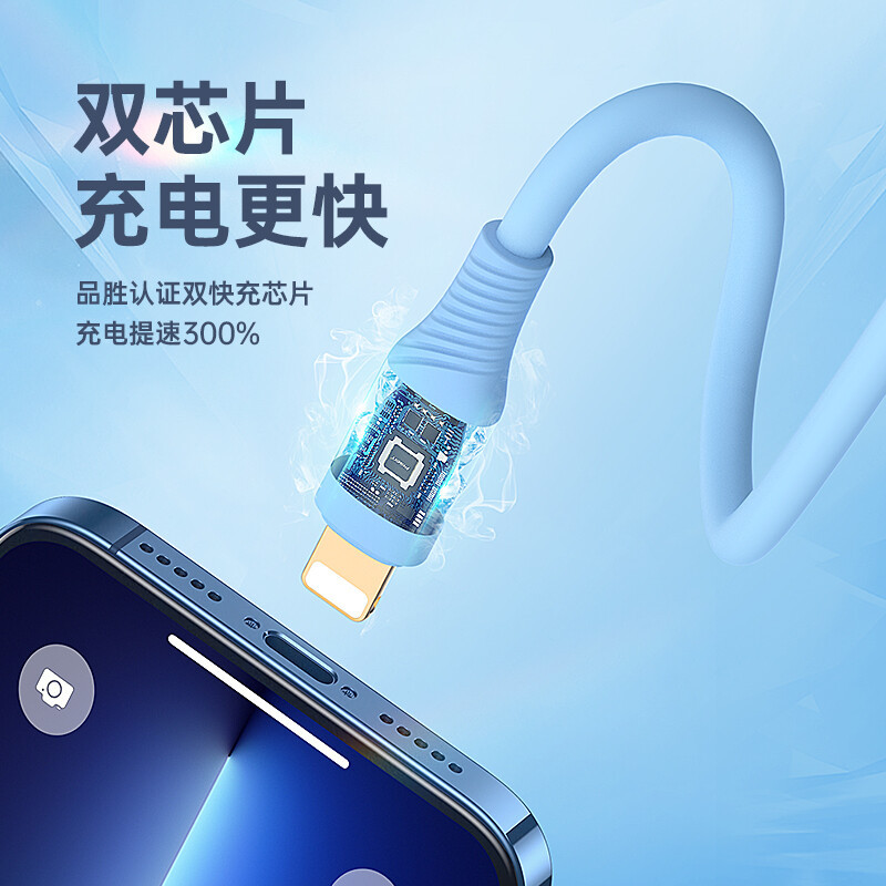 品胜适用苹果14pd快充数据线iPhone13液态软胶充电线20W闪充11长