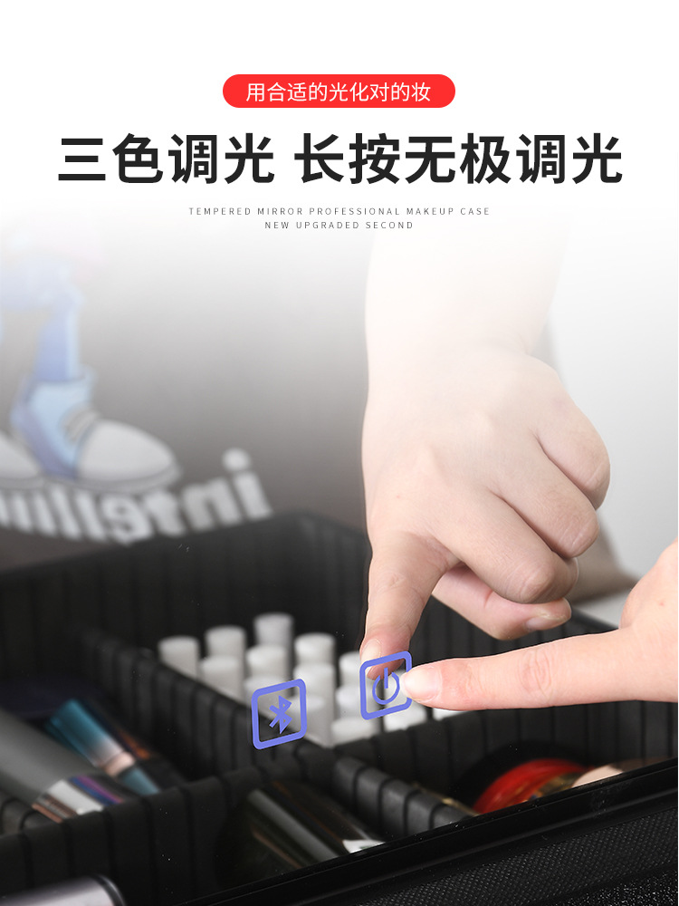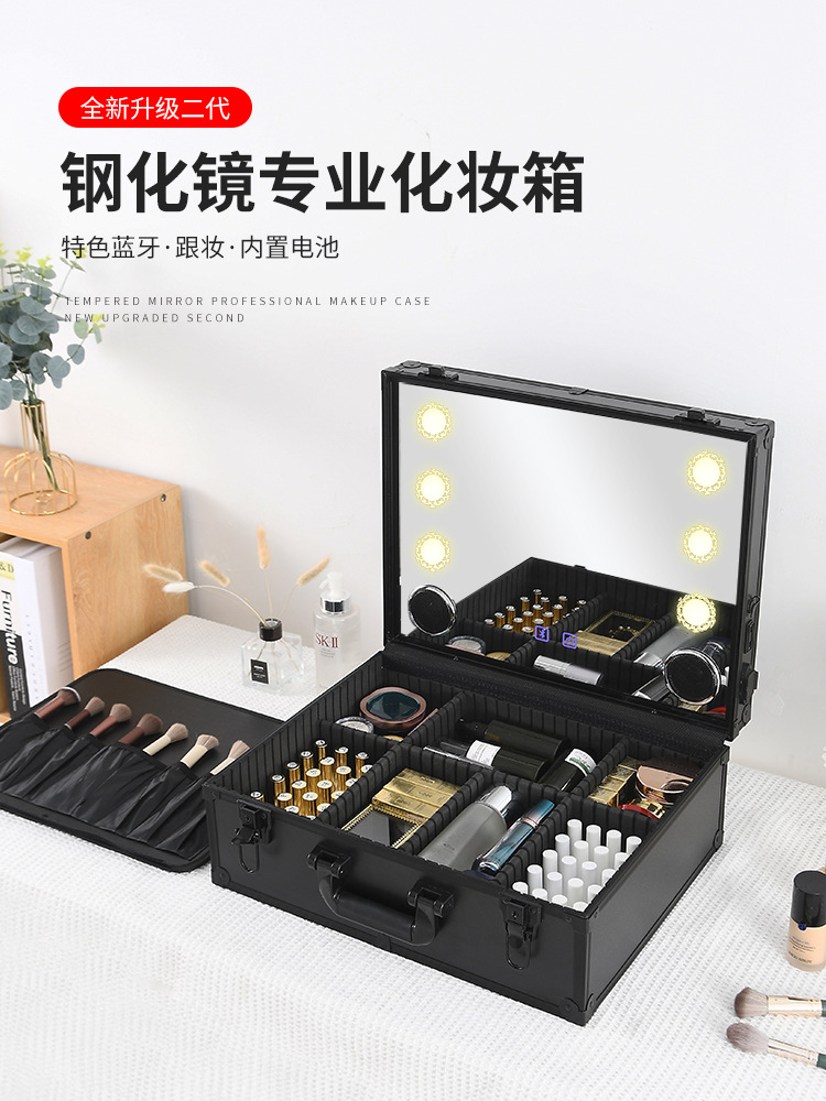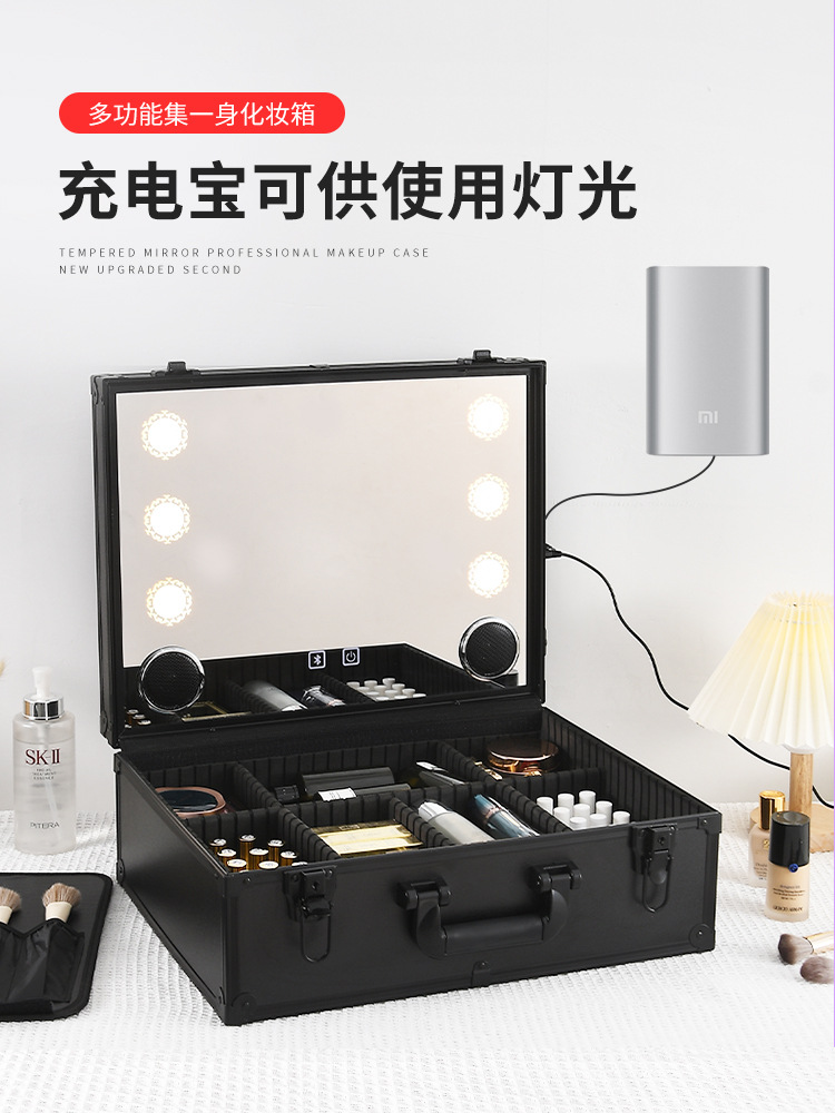 化妆箱带灯带镜大容量 化妆师专业手提大号LED灯插电可调光跟妆箱