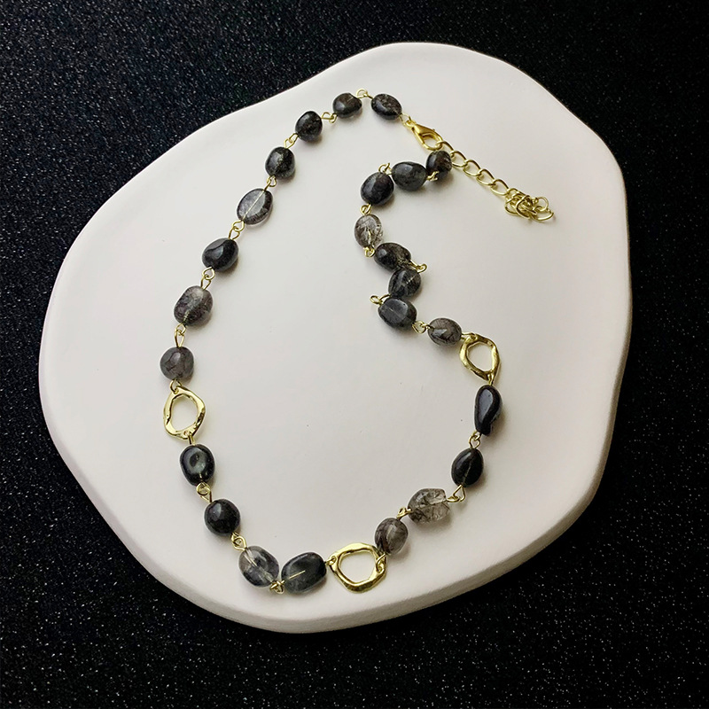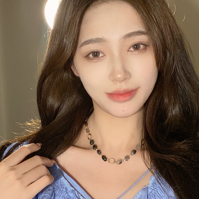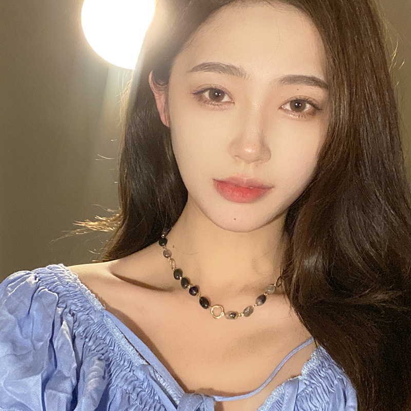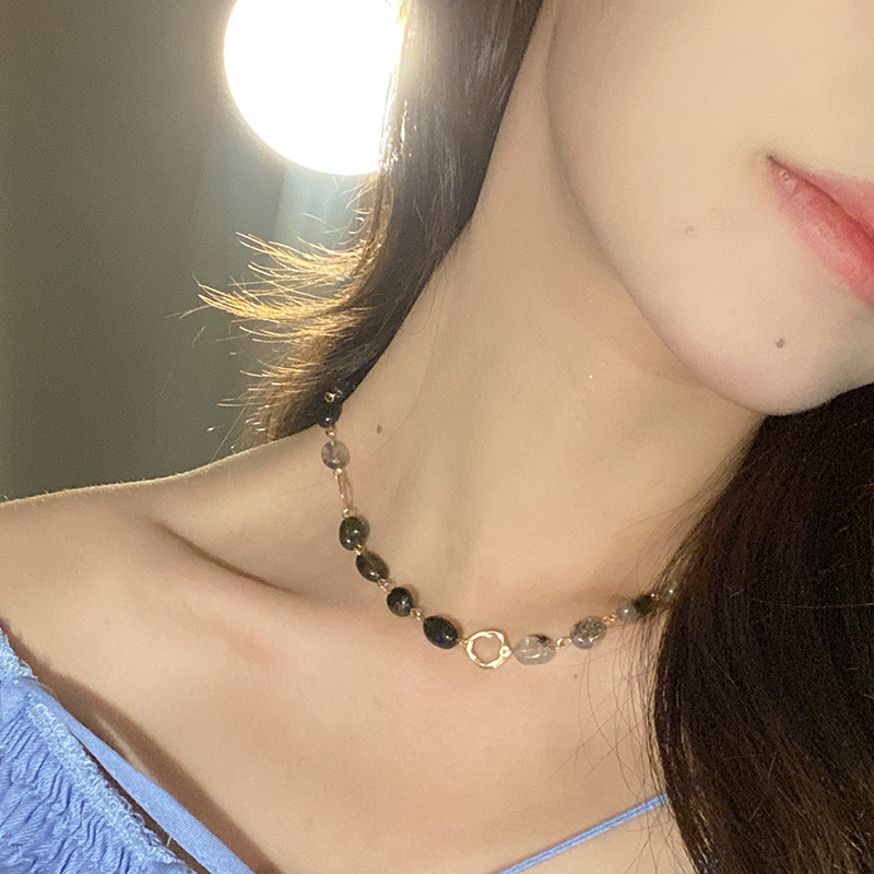春夏复古气质石头串珠项链女小众设计感百搭个性锁骨链choker配饰