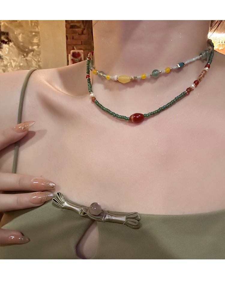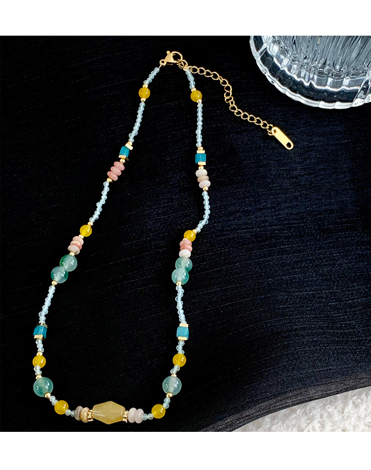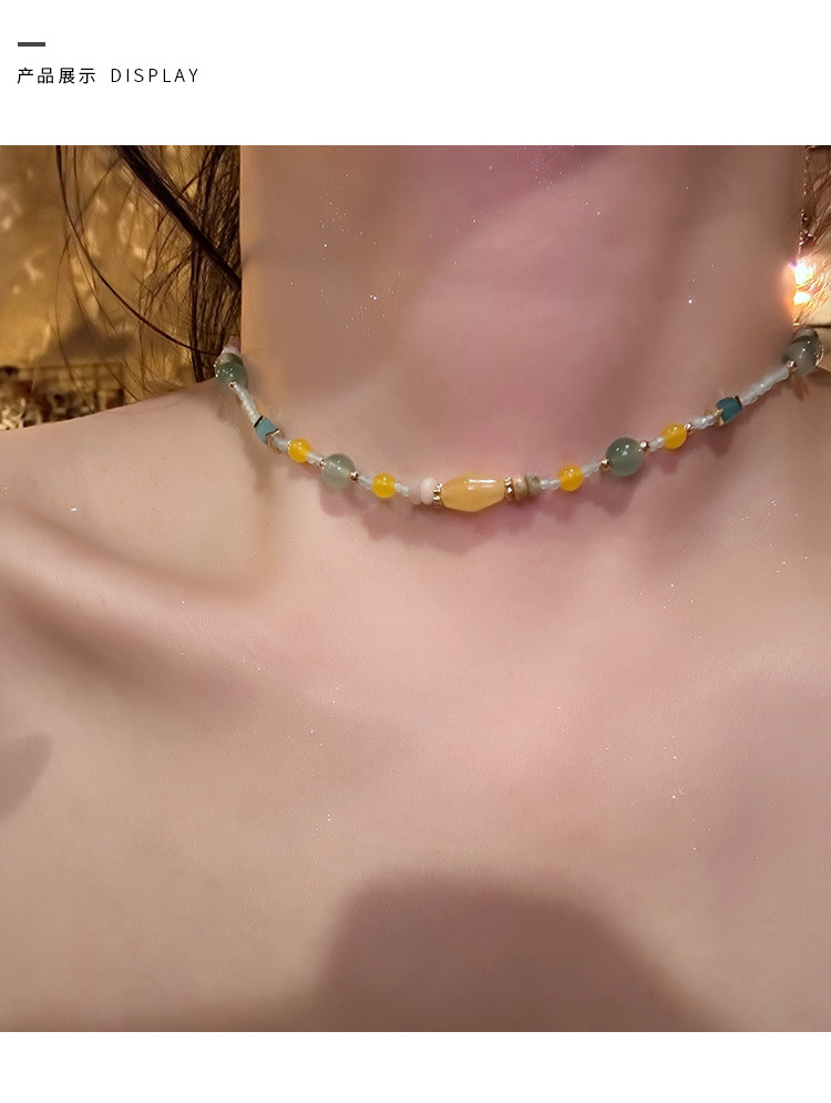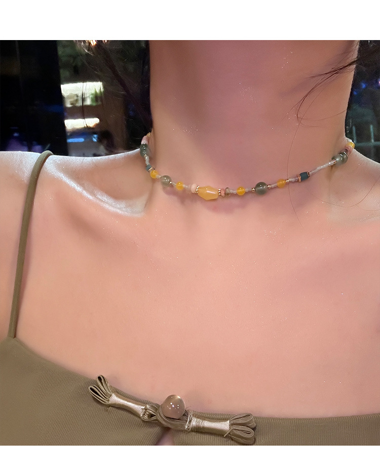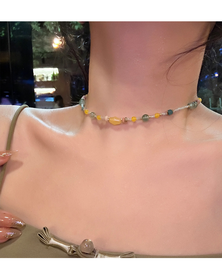 夏日多巴胺彩色串珠项链气质小众轻奢高级感短款锁骨链设计感颈链