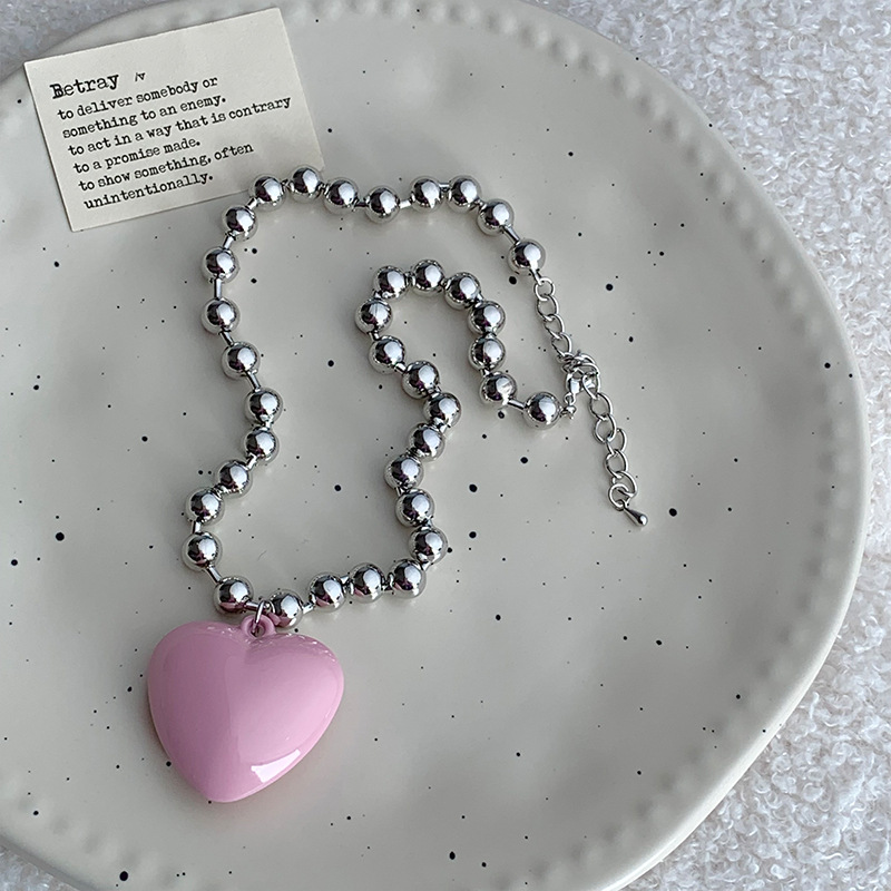 个性夸张亚克力粉色大爱心吊坠项链夏季设计感甜酷辣妹颈链锁骨链