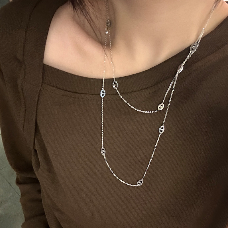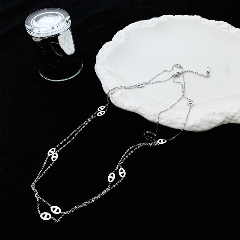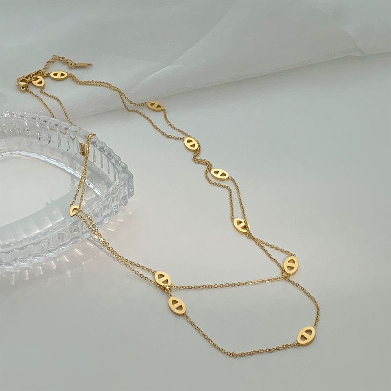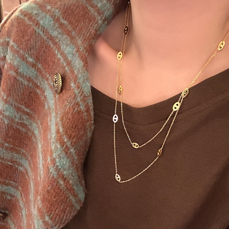 长款钛钢不掉色双层叠戴猪鼻子项链女个性气质轻奢简约
