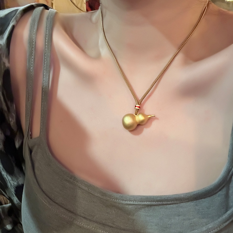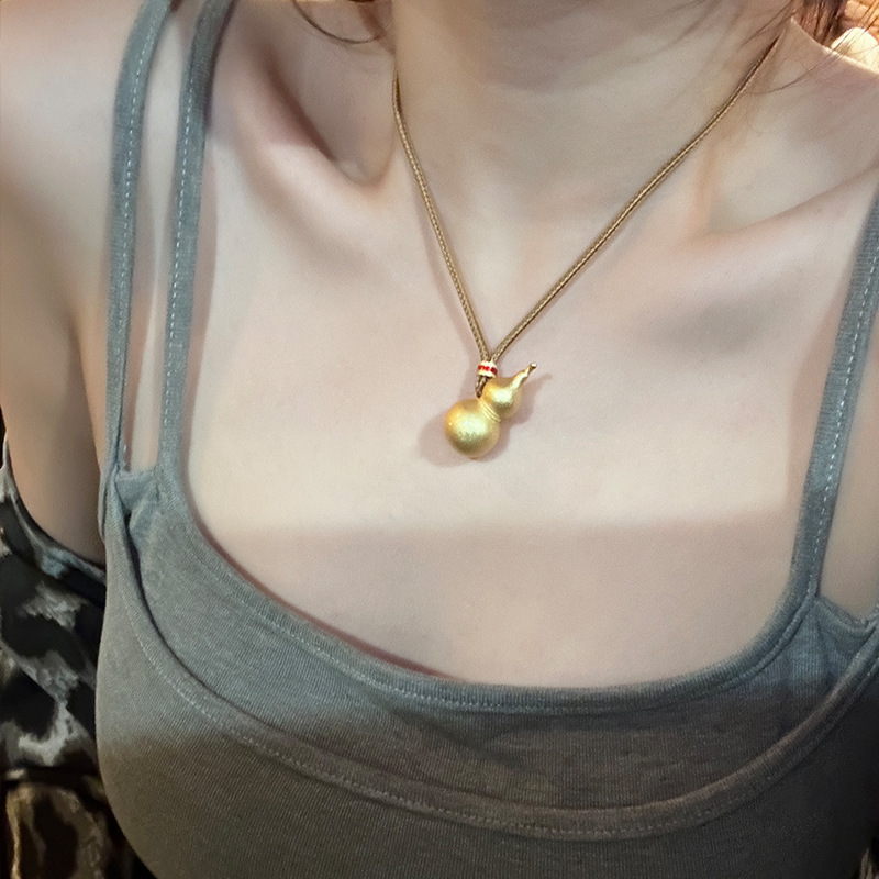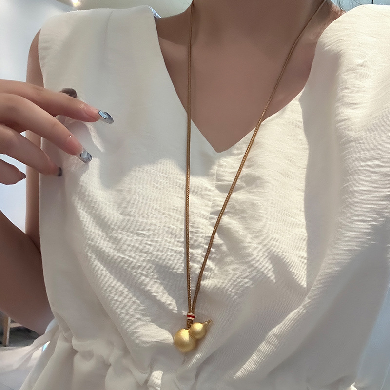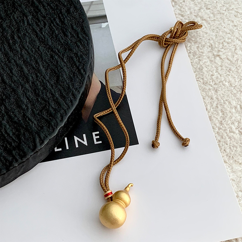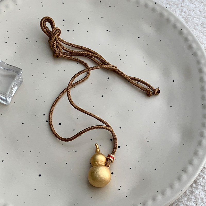 福禄常满~简约金色葫芦吊坠项链女古法编织绳长款抽拉可调节颈链