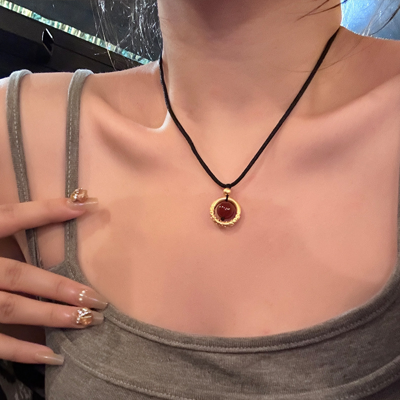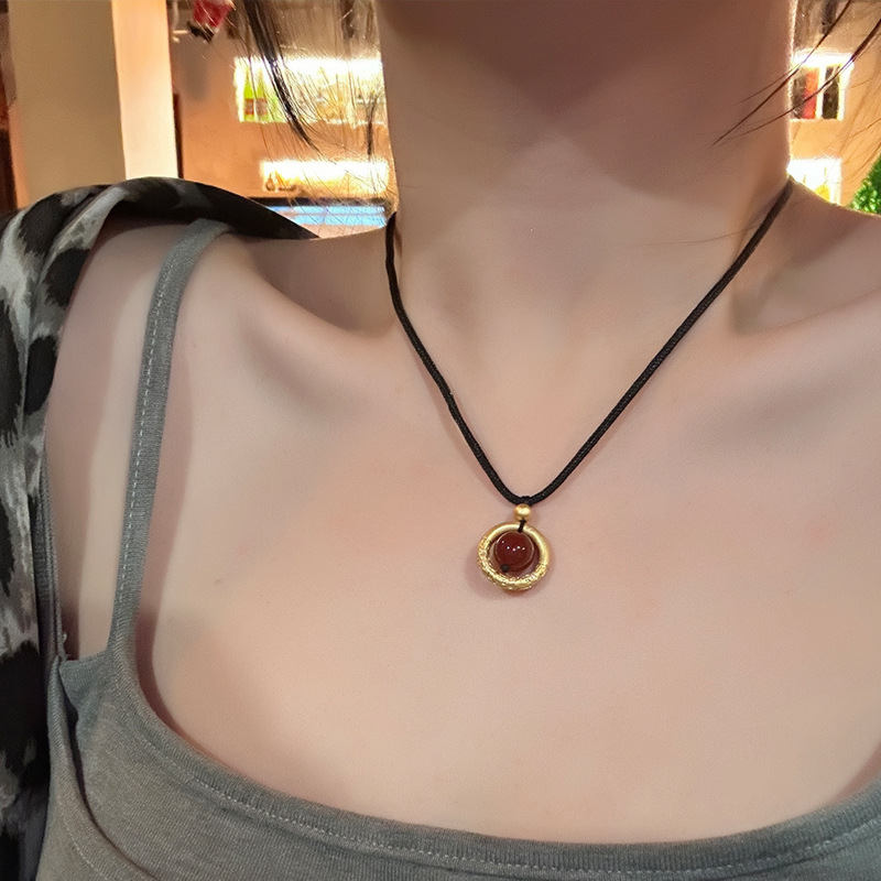 新中式红色转运珠吊坠项链女简约百搭锁骨链颈链气质百搭国风配饰