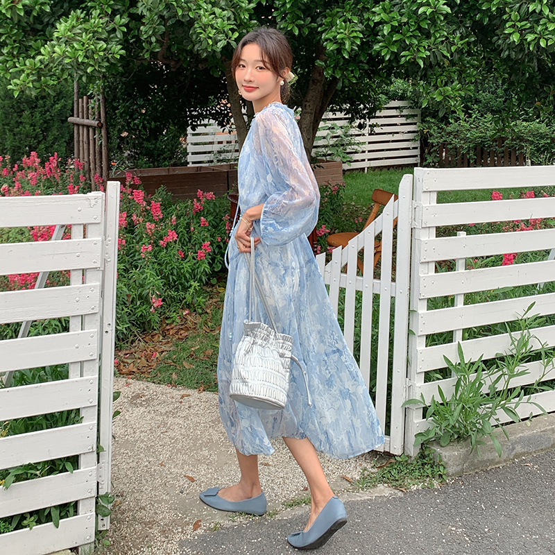 新款法式减龄碎花雪纺连衣裙吊带夏季温柔气质显瘦仙女长裙子