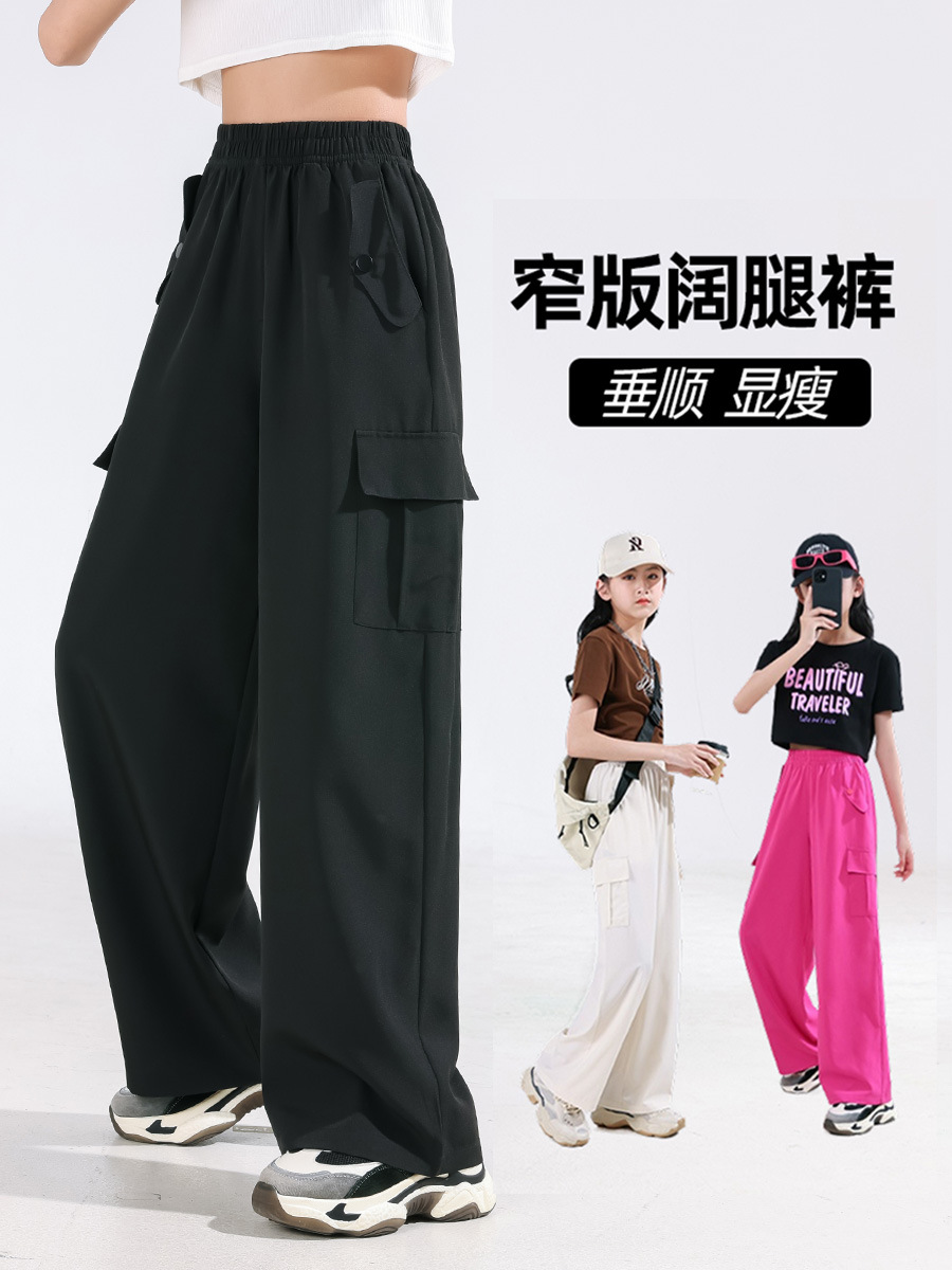 冰丝阔腿裤女童长裤夏季薄款儿童洋气直筒裤子大童工装裤防蚊裤潮