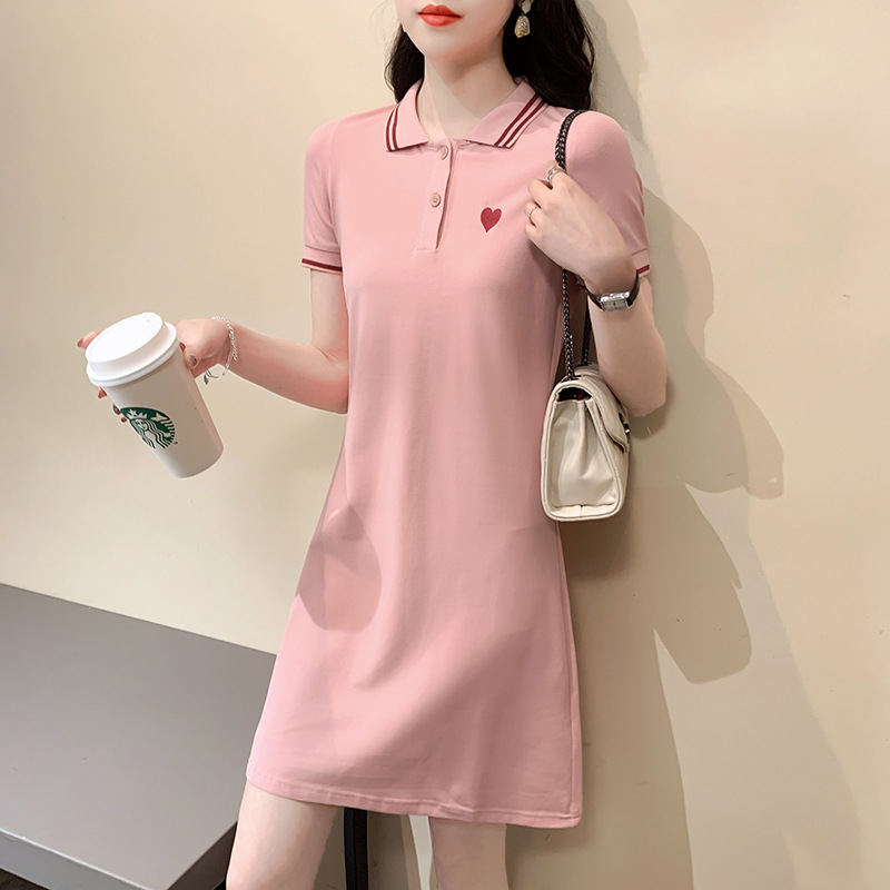 Polo领连衣裙女士夏季新款甜系减龄穿搭小个子宽松休闲中裙子