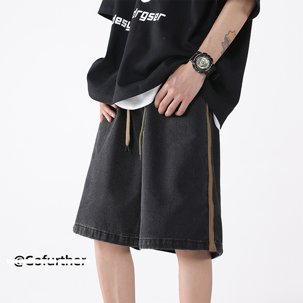 美式复古水洗牛仔短裤男夏季潮牌欧美高街半裤抽绳高级感五分裤子