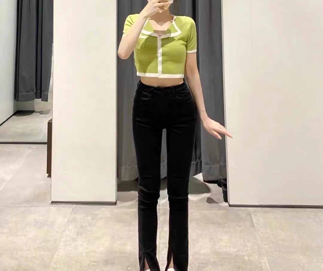 夏季性感半开领小香风短款修身短袖ins薄款甜辣小个子针织上衣女
