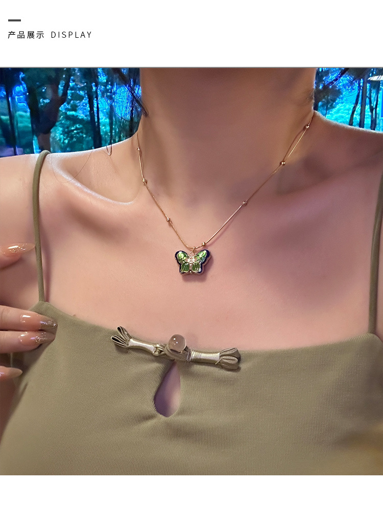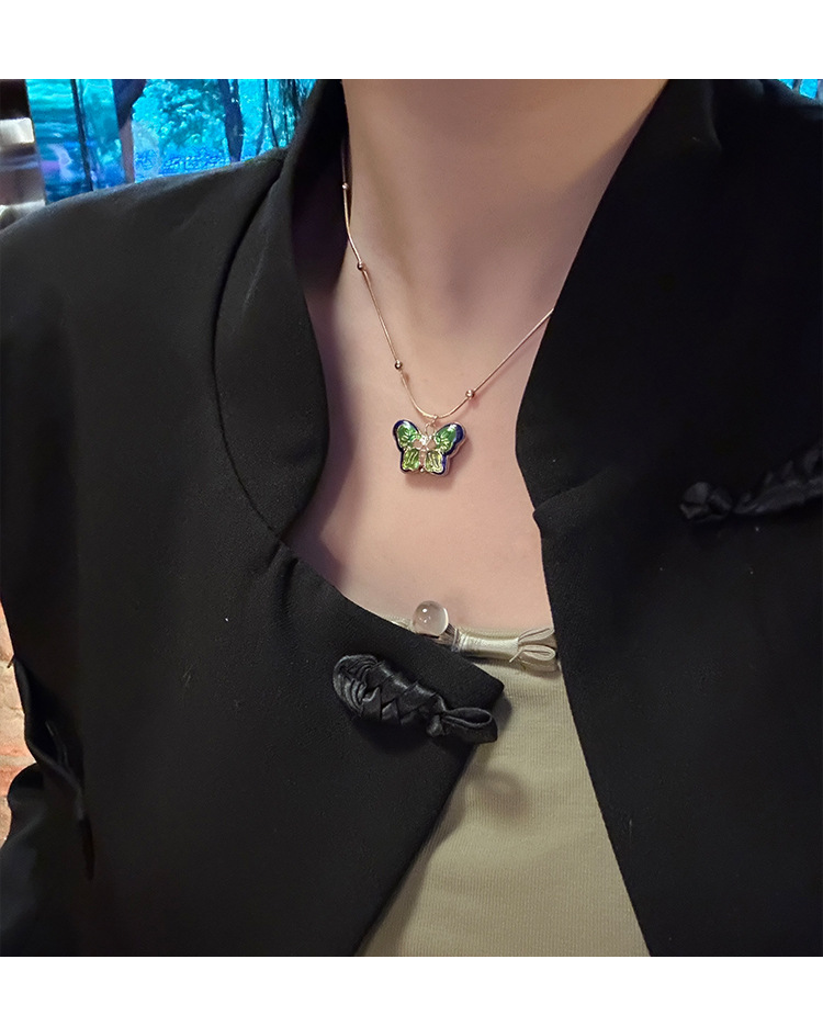 珐琅滴釉夏季彩色蝴蝶项链女小众复古高级感短款颈链民族风锁骨链