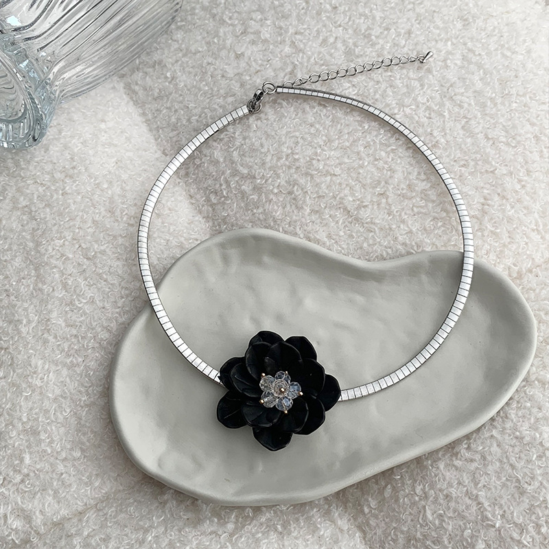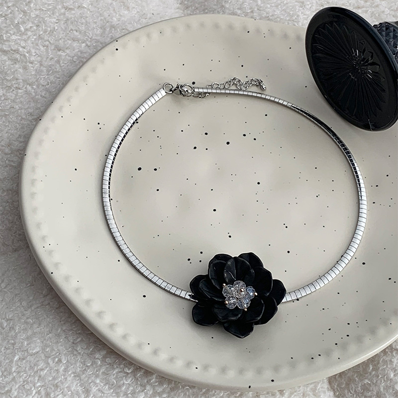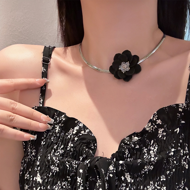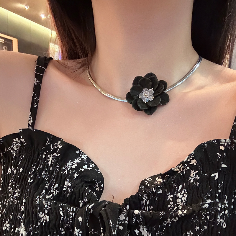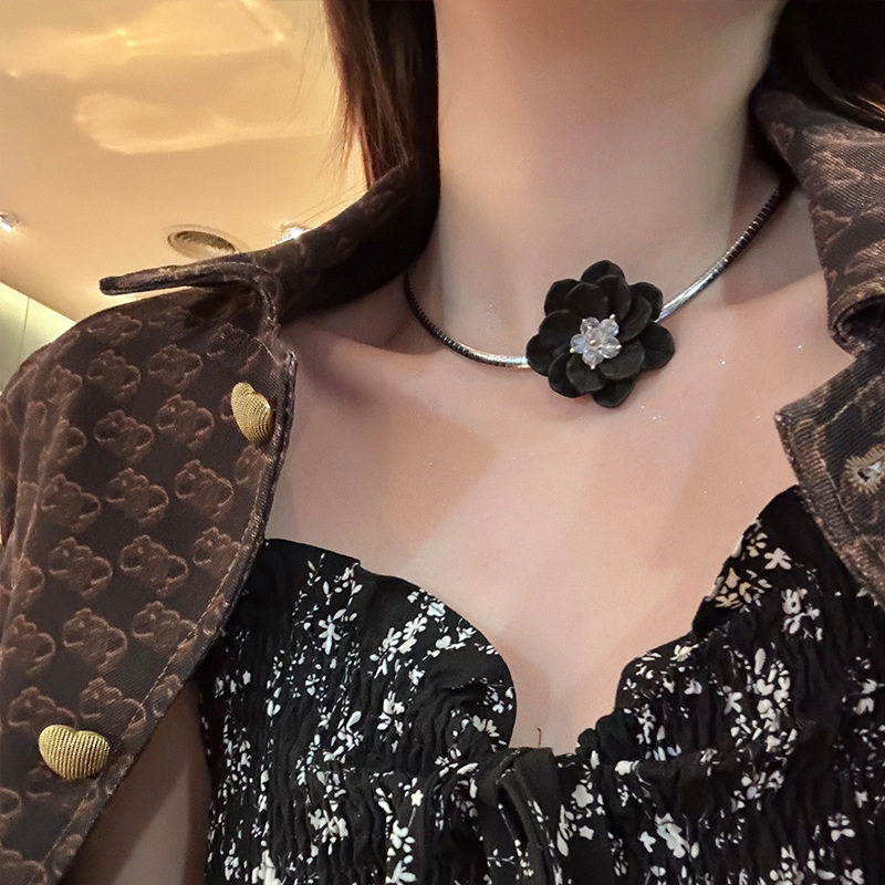 甜酷辣妹风黑色立体花朵项链女轻奢小众设计感choker项链百搭颈链