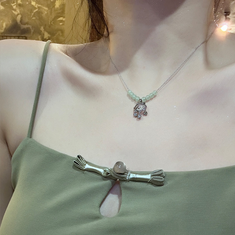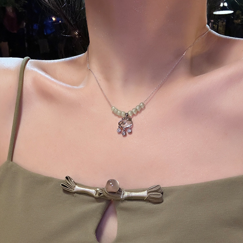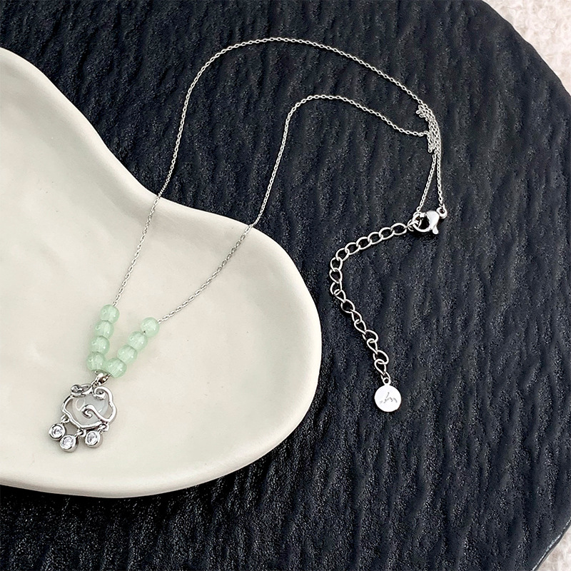 新中式云纹玉石平安锁项链气质高级感显白锁骨链小众设计百搭颈链