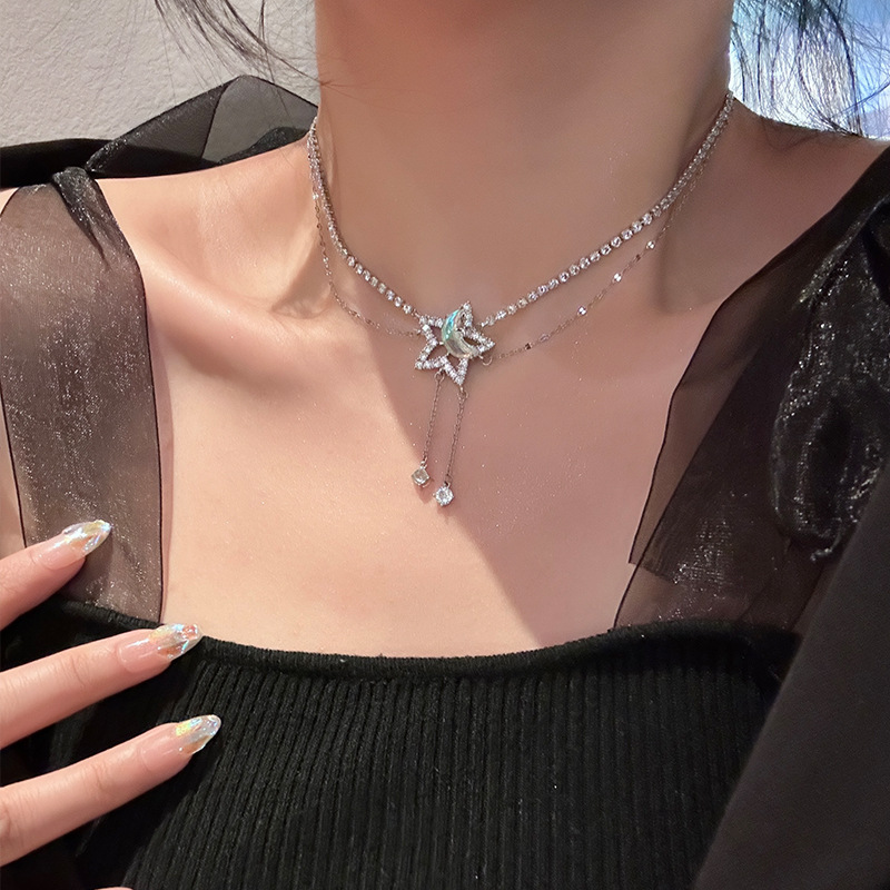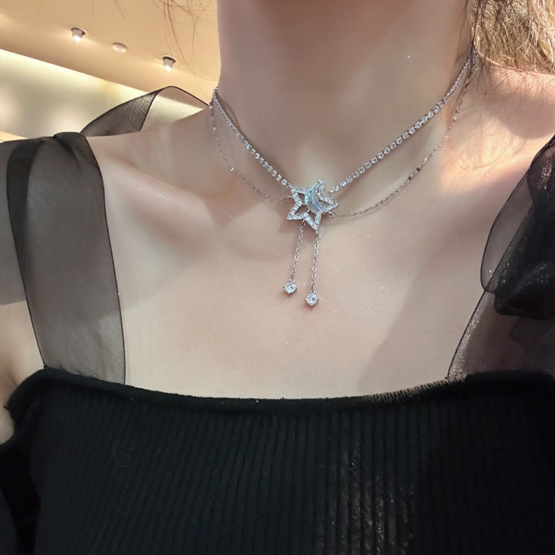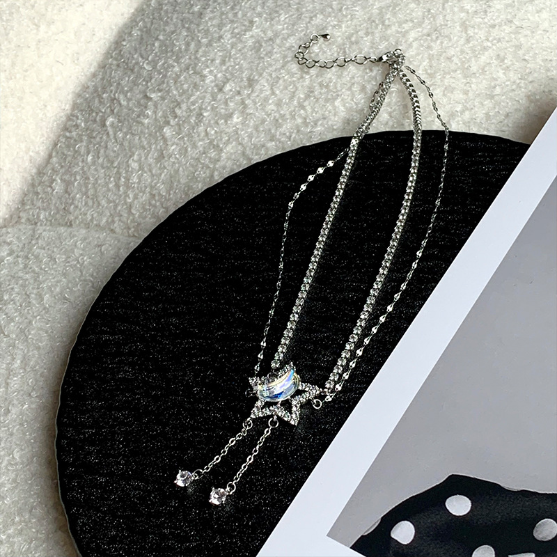 轻奢超闪锆石星月项链气质高级感短款星星月亮颈链双层叠戴锁骨链