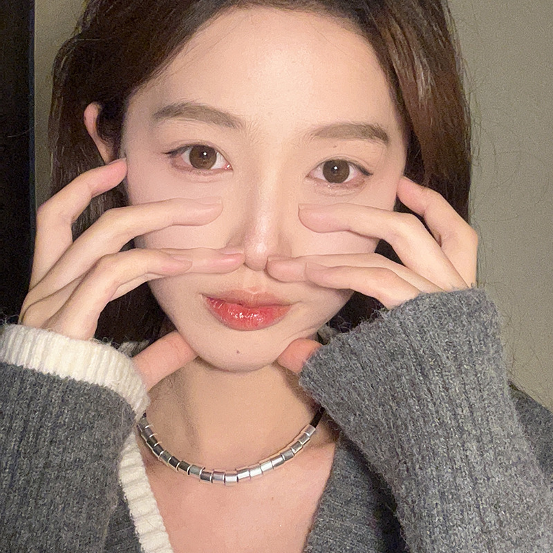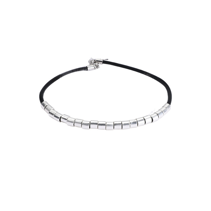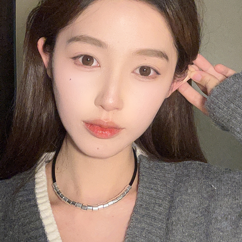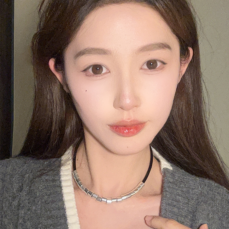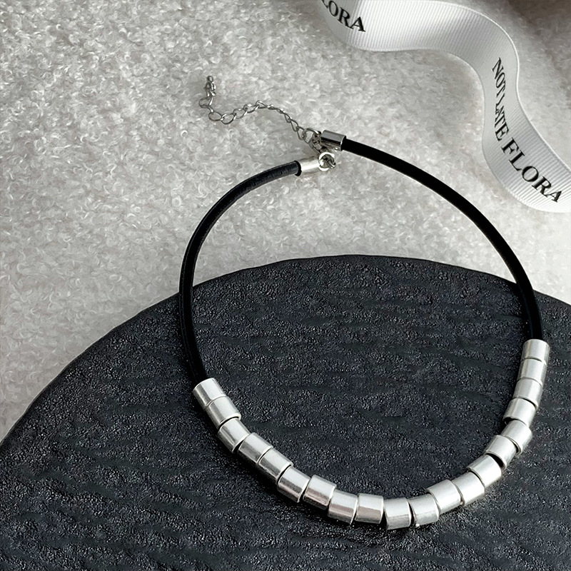 个性简约冷淡风银色金属圆圈皮质项链女小众设计感短款颈链锁骨链