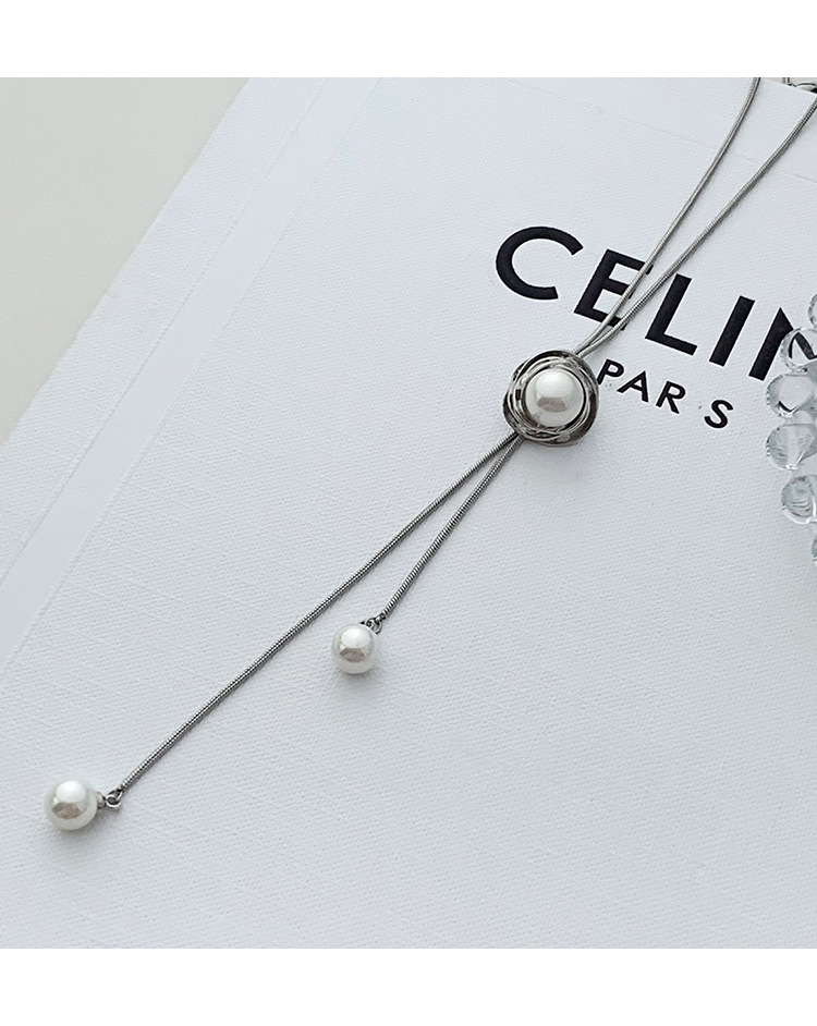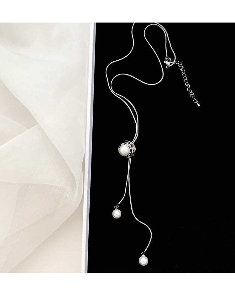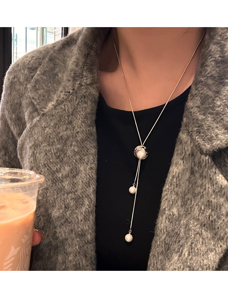 新款珍珠长款抽拉式可调节项链轻奢小众高级感颈链配饰