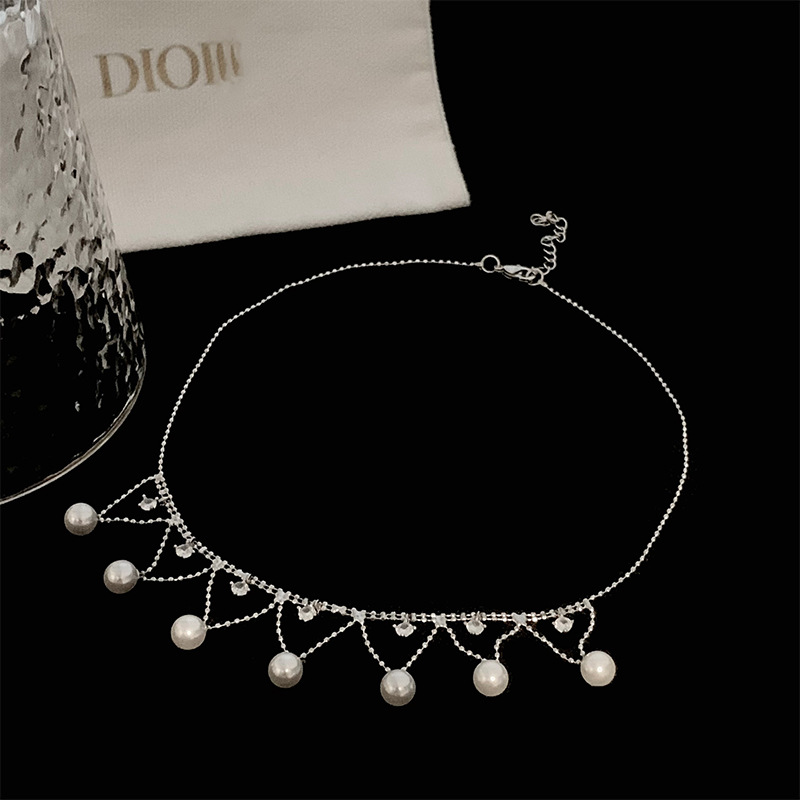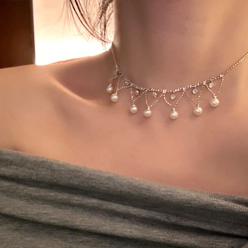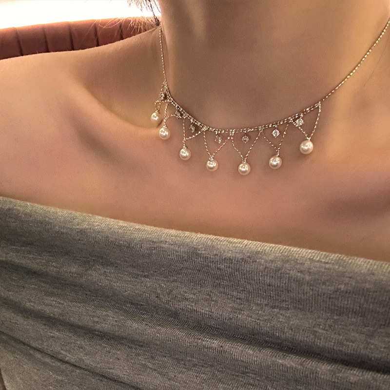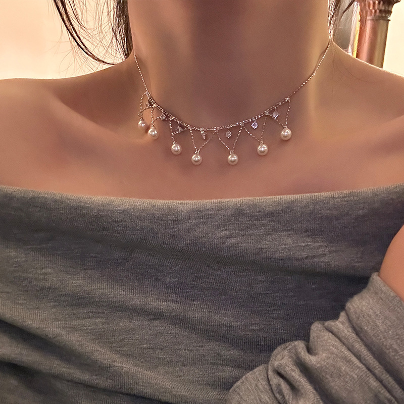 气质优雅珍珠锆石流苏项链锁骨链女新款高级感短款颈链百搭配饰潮