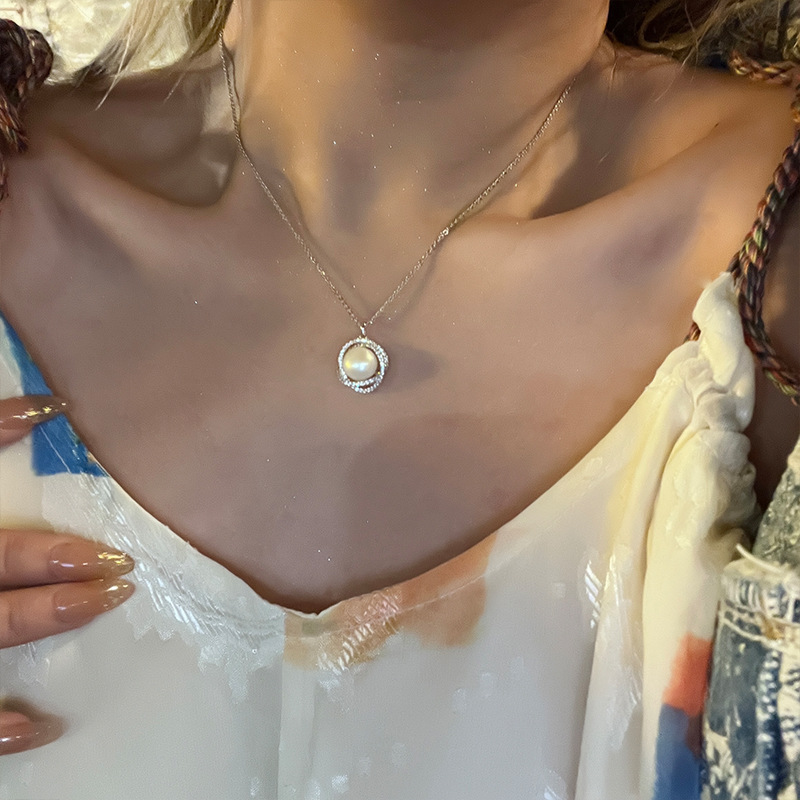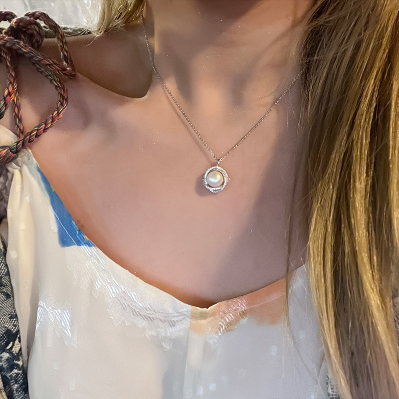 轻奢镶钻天然淡水异形珍珠吊坠项链气质小众设计锁骨链高级感颈链