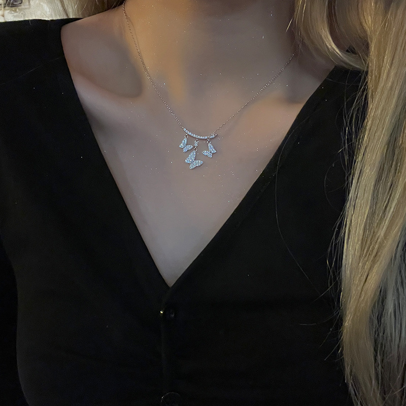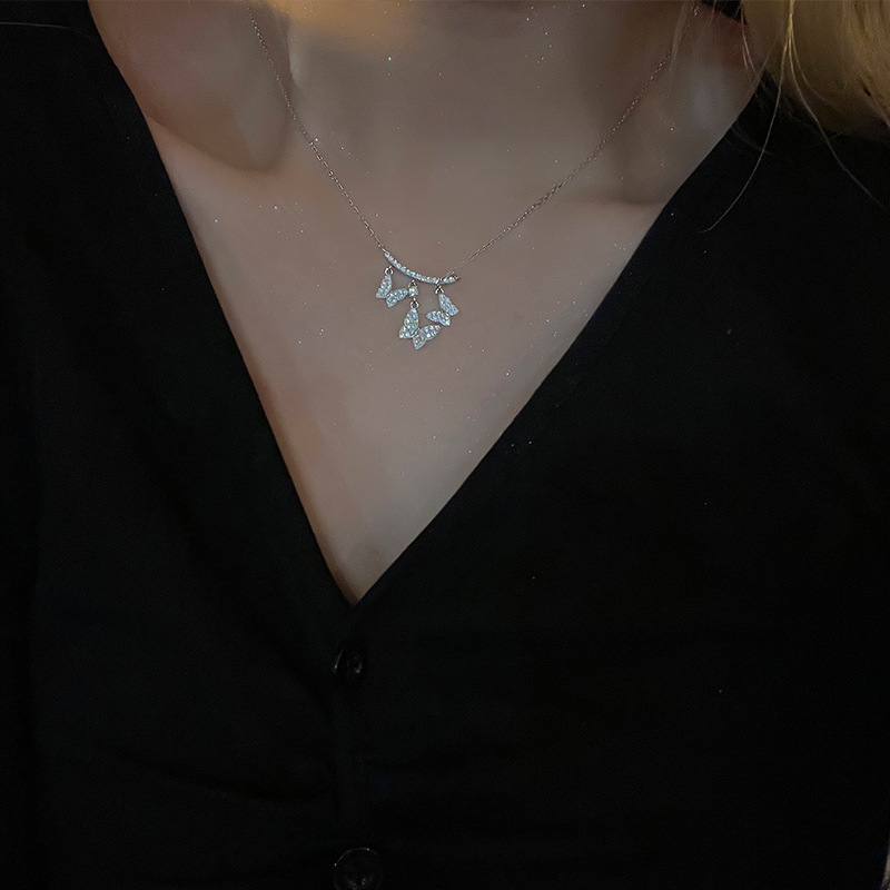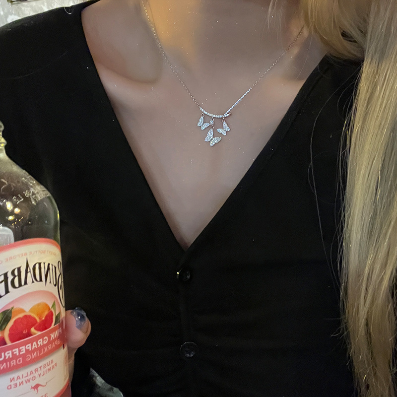 S925银气质轻奢镶钻蝴蝶项链新款小众颈链设计高级感锁骨链