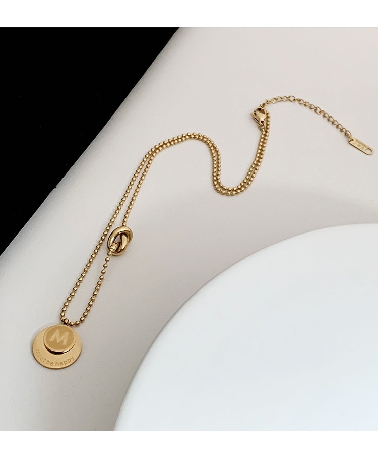 钛钢M字母圆牌吊坠项链女 个性小众设计感短款颈链简约百搭锁骨链
