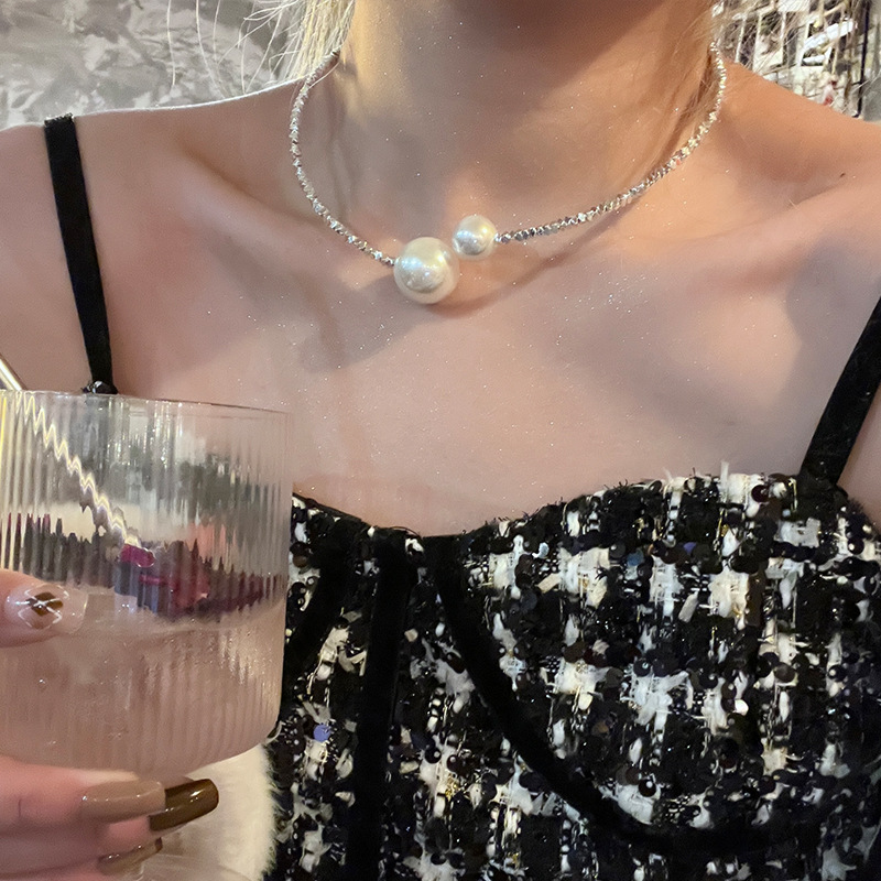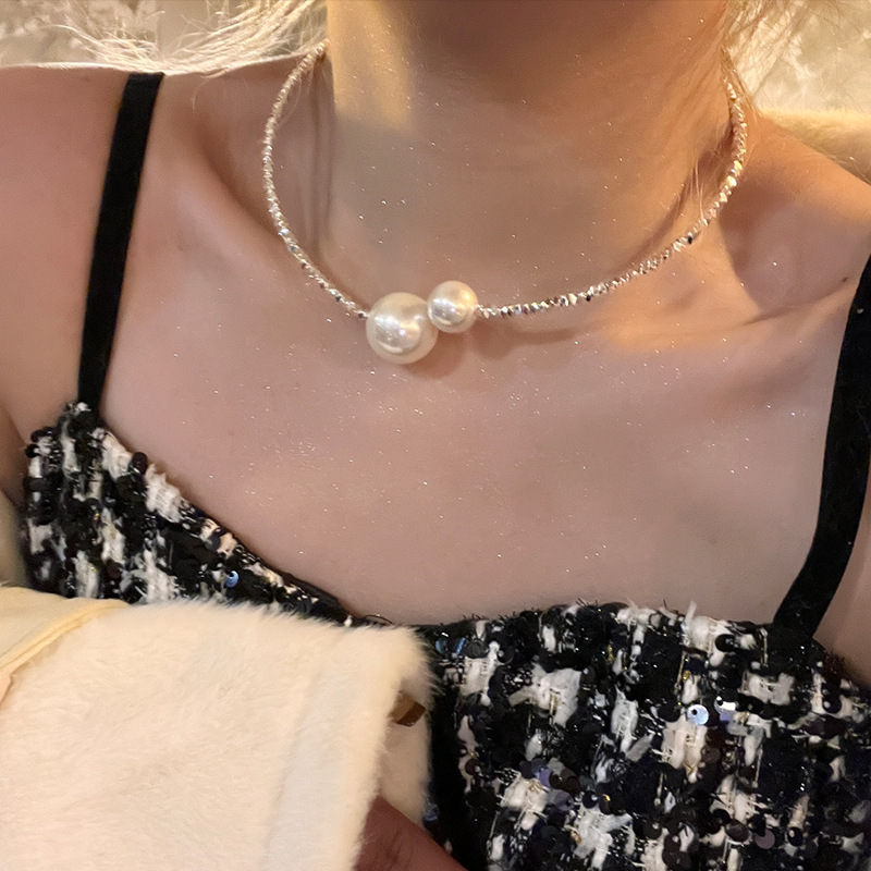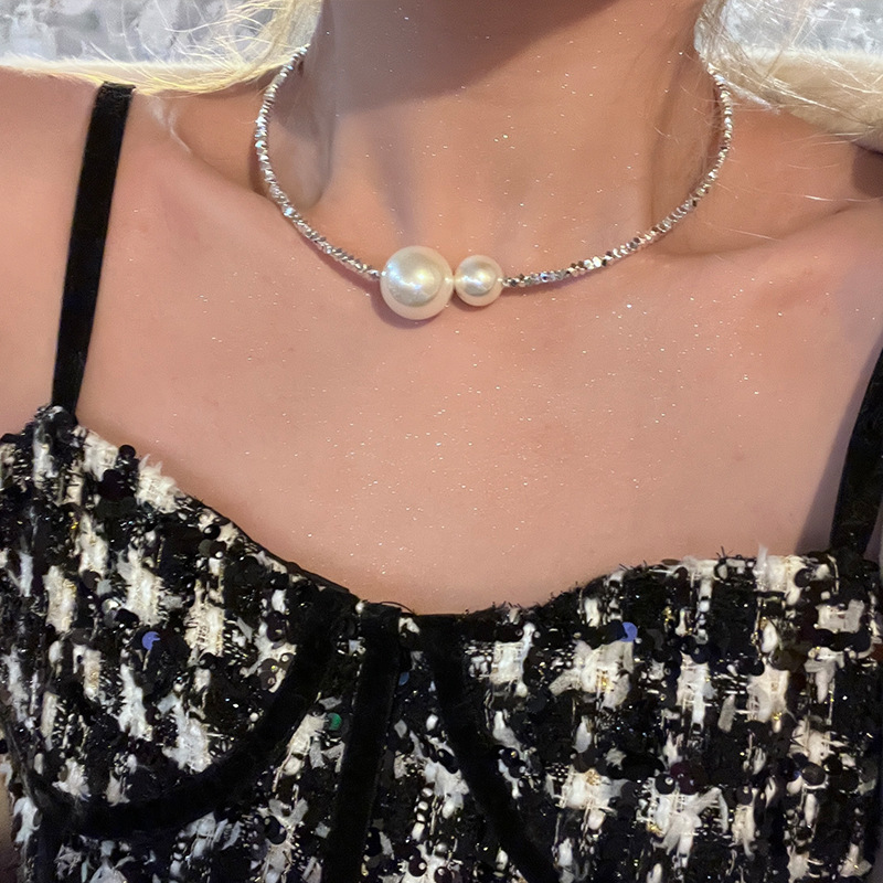 气质高级感超闪碎银子项圈轻奢性感珍珠项链小众设计感个性锁骨链