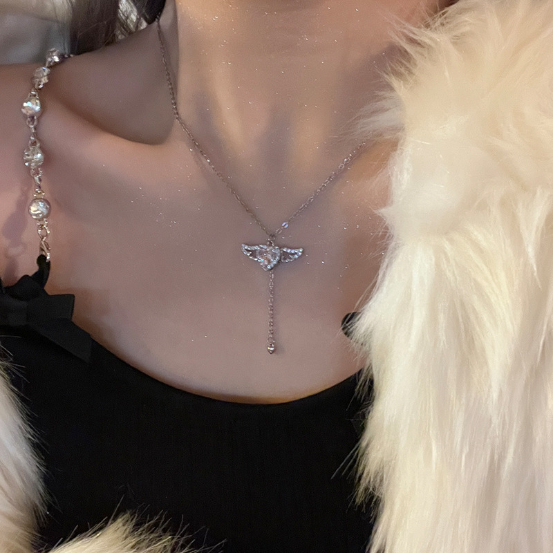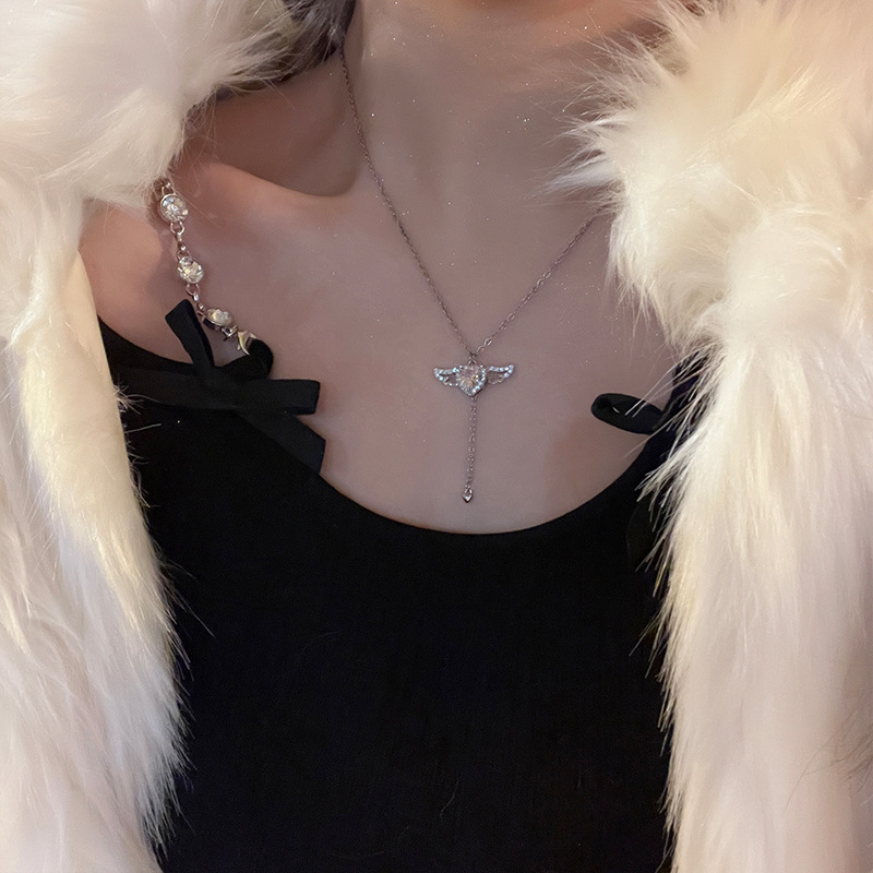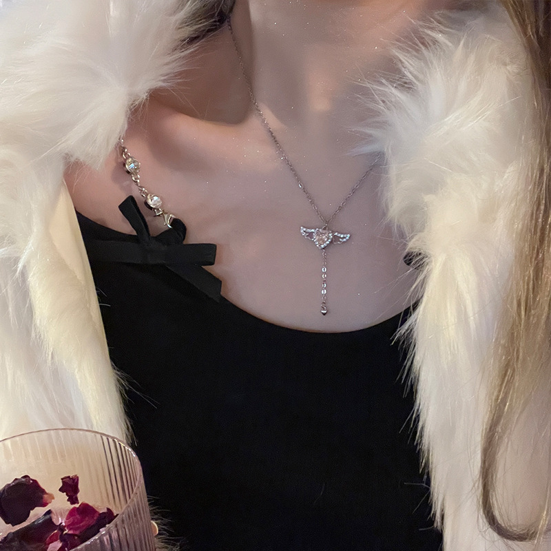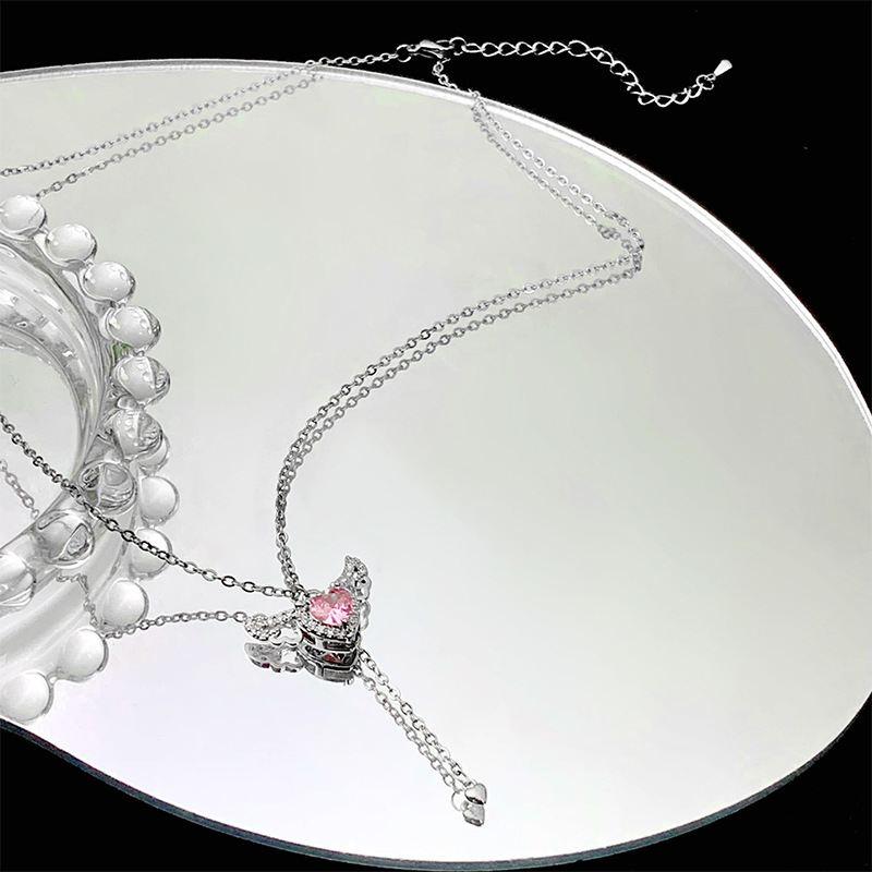 丘比特之心粉色锆石爱心项链气质甜美早春短款颈链小众设计锁骨链