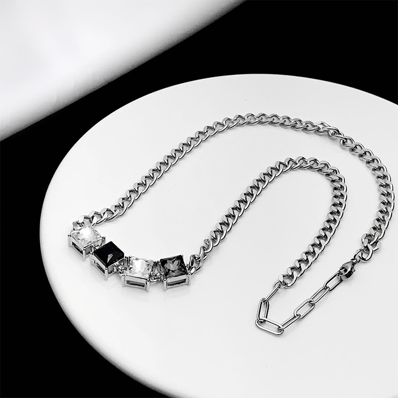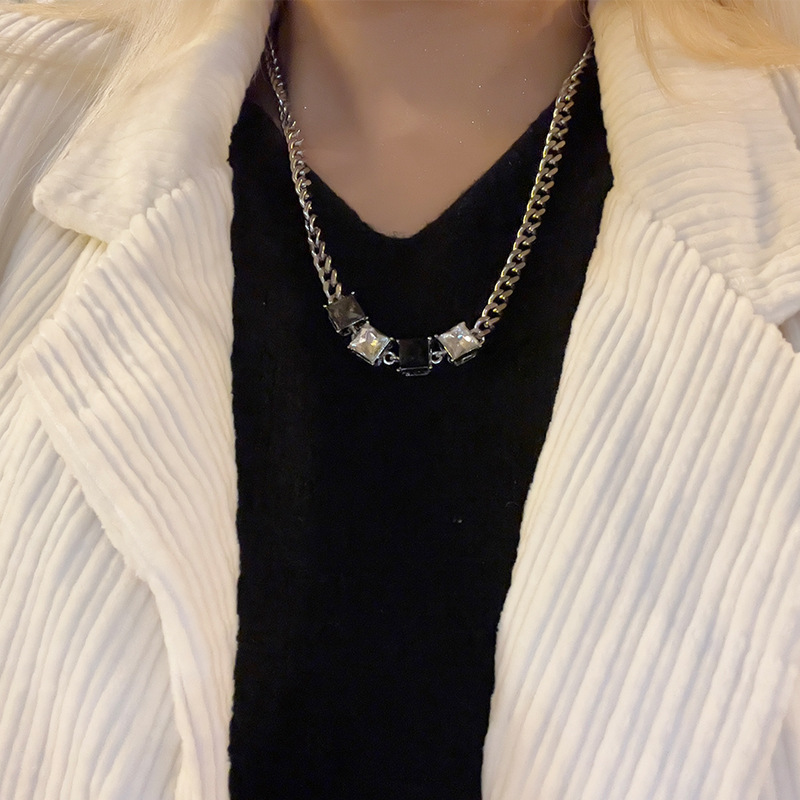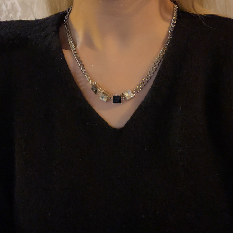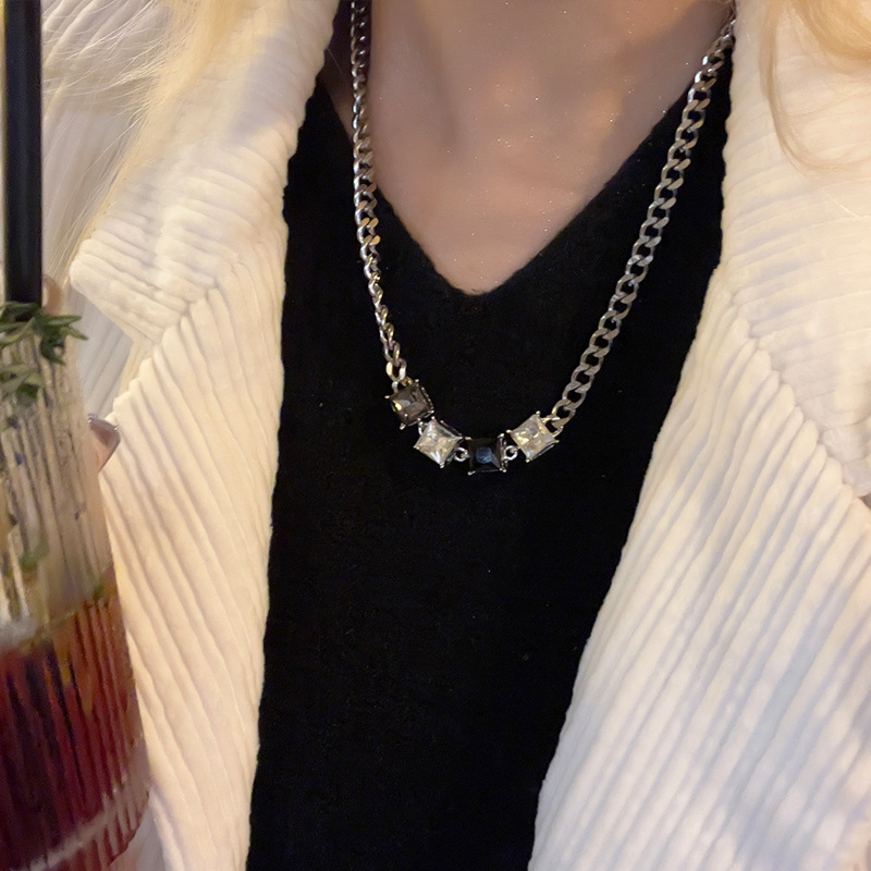 小众甜酷风方形水晶项链拼色冷淡风锁骨链 ins短款嘻哈颈链配饰潮