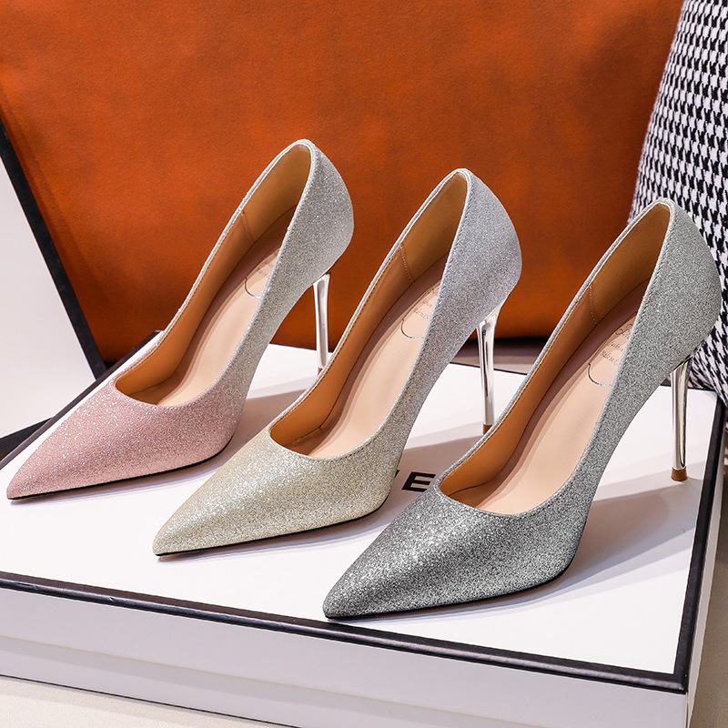 新款渐变色亮片新娘高跟婚纱鞋礼服细跟大码43名媛宴会单鞋