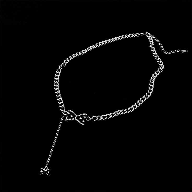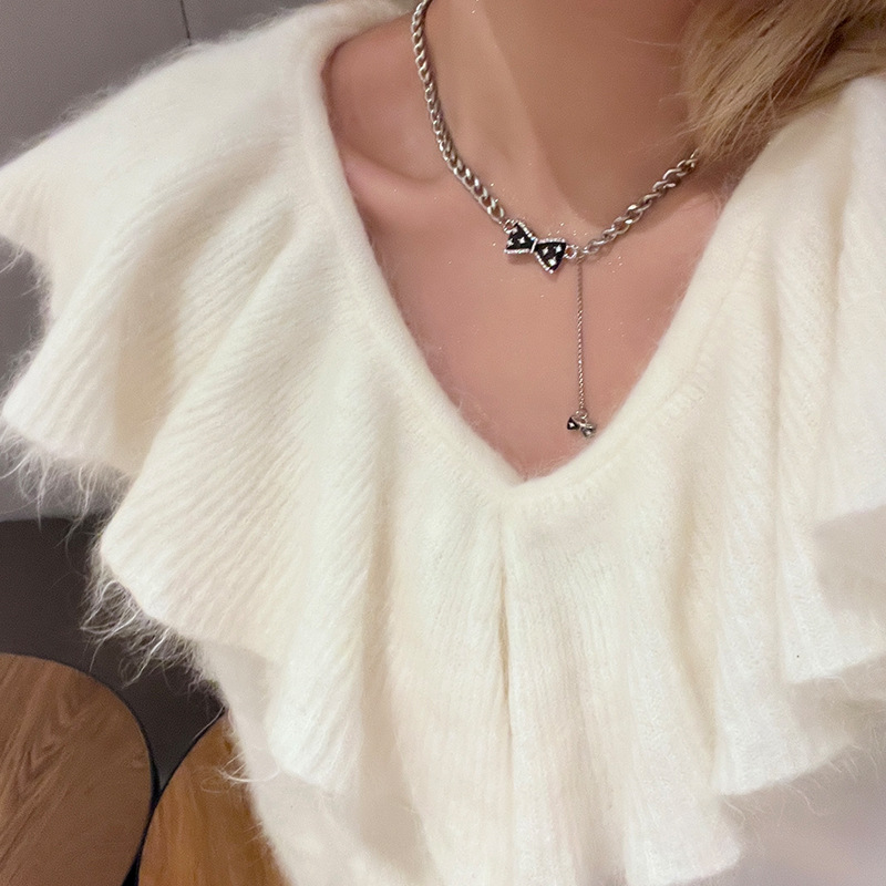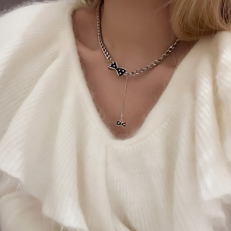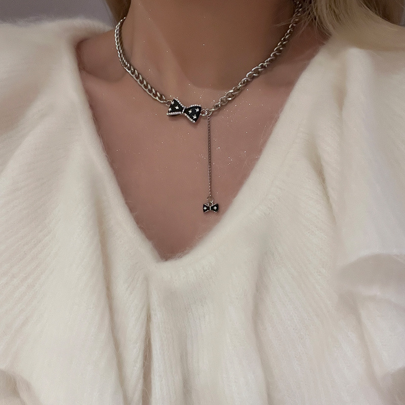 甜酷风黑色蝴蝶结吊坠项链轻奢小众设计感颈链气质新款锁骨链
